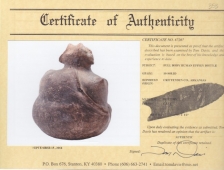 5 1/2" Full Body Human Effigy Bottle. Crittenden Co, AR. Solid. Detailed features and fine finish. Davis G10 COA.