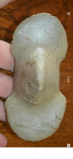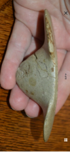 This outstanding Woodland Helmet style boatstone was found in Greene Co, Tennessee and measures 4.5/8 inches long and is 2.25 inches wide and is 1.5 inches tall at the center. This piece is made from a pale white colored fine grained Quartz material. This boatstone has amazing form and is one of the most stylized boatstones that I have ever seen. This piece was found broken in two and has been glued in the center but is still a great artifact. This piece was purchased from the collection of Tommy Beutell and is guaranteed to be 100% authentic and unaltered. Tommy paid $1,000.00 for this piece many years ago.