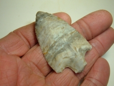 Offered from our collections is a VERY FINE STRIPED ARCHAIC STEMMED POINT 2 5/16" FROM CHAMPAIGN OR CLARK CO.OHIO CO. EX.BILLY RESNICKA WHO FOUND THIS ARTIFACT & HUNTED BOTH THESE COUNTIES REGULARLY. MADE OF COLORFUL STRIPED GRAY COSHOCTON FLINT,A VERY NICELY WELL MADE RELIC!.