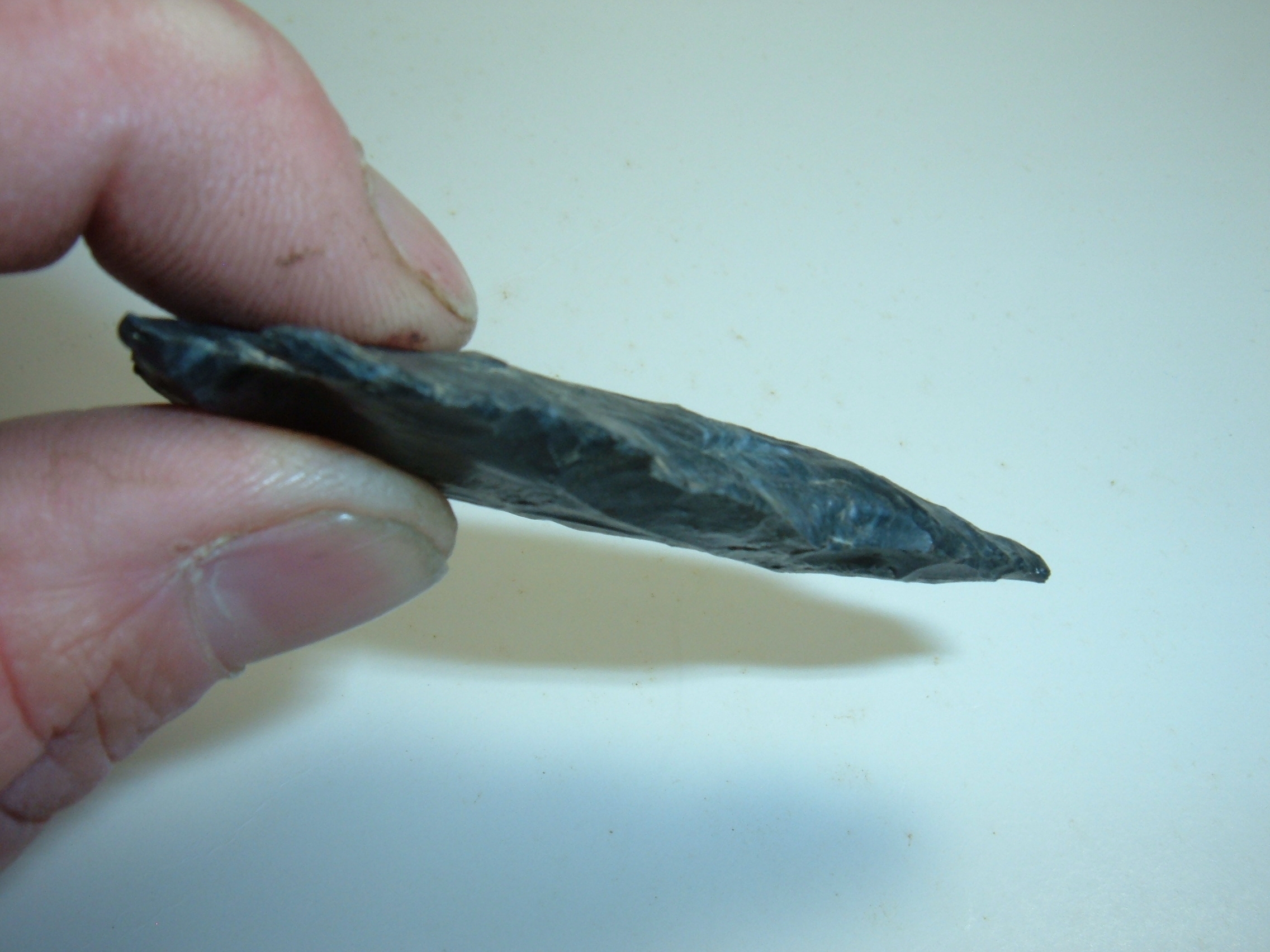 HERE IS A GREAT RARE DIAGONAL NOTCH POINT FROM OUR OWN PERSONAL OHIO COLLECTIONS! FOUND IN CRAWFORD CO.OHIO , 2 3/8" AND IS EX CARL DUNN A WELL KNOWN NAME IN OHIO COLLECTING CIRCLES!MATERIAL IS SUPER NICE,BLACK COSHOCTON FLINT HAS A SPOKESHAVE ON ONE SIDE PURPOSELY DONE BY ANCIENT MAN! HARD TO GET THESE DIAGONAL NOTCH!