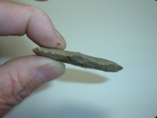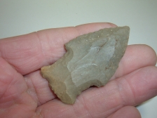 FROM OUR PERSONAL COLLECTIONS IS THIS FINE PALEO STRINGTOWN LANCE FROM FRANKLIN CO./LICKING CO. OHIO BORDER 2 1/4" AND MATERIAL IS DELAWARE CHERT. EXCELLENT PALEO EXAMPLE WITH GREAT FORM AND AWSOME TIP!