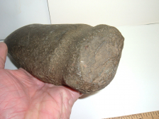 HERE IS ANOTHER OF THE COLLECTION OF EXTREMELY WELL DOCUMENTED AXES THAT WE HAVE FOR SALE,THIS FULL GROOVE AXE IS THE LARGEST AT 8" EVEN A WEE BIT MORE AND WEIGHS A WHOPPING JUST SHORT OF 4 POUNDS! BILL BELIEVES THIS AXE MAY BE BASALT, I CERTAINLY THINK IT'S MADE OF HARDSTONE WITH THE FOLLOWING PROVENANCE -FOUND BY WILLIAM CRAMSEY IN LOWER NAZARETH TOWNSHIP, NORTHAMPTON CO. PA. ON THE GRADWAHL FARM ON A HILL BETWEEN MONOCACY CREEK AND A TRIBUTARY TO SAME. MR. CRAMSEY SAYS A CLOVIS POINT,MADE OF RED AND YELLOW JASPER WAS ALSO FOUND THERE IN THE 1970'S!