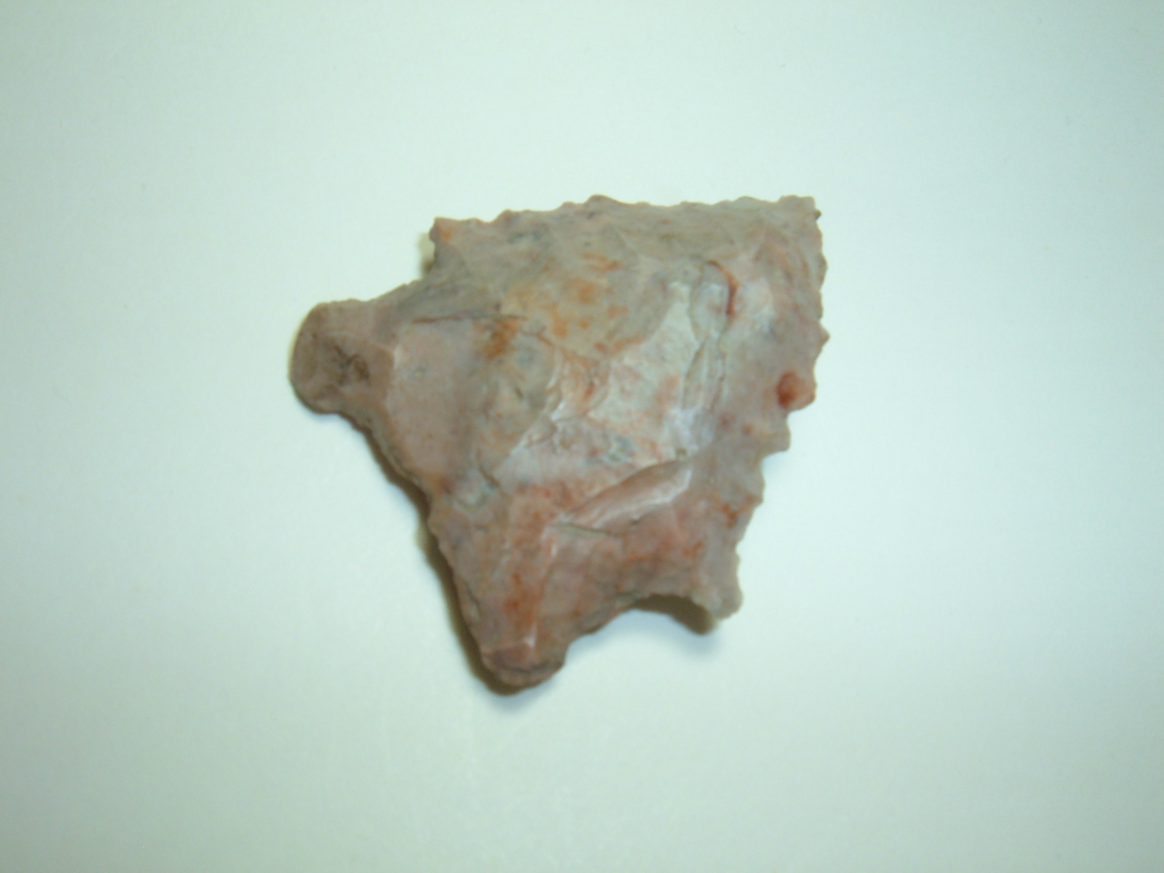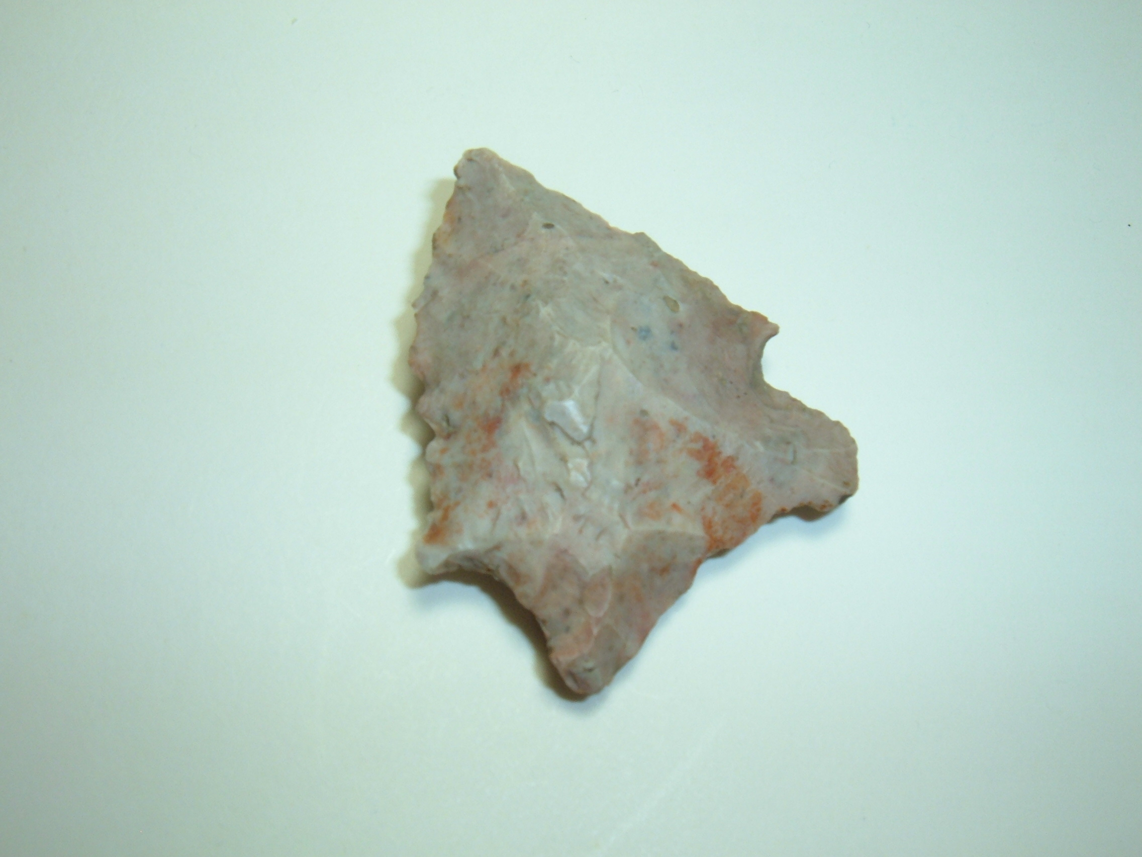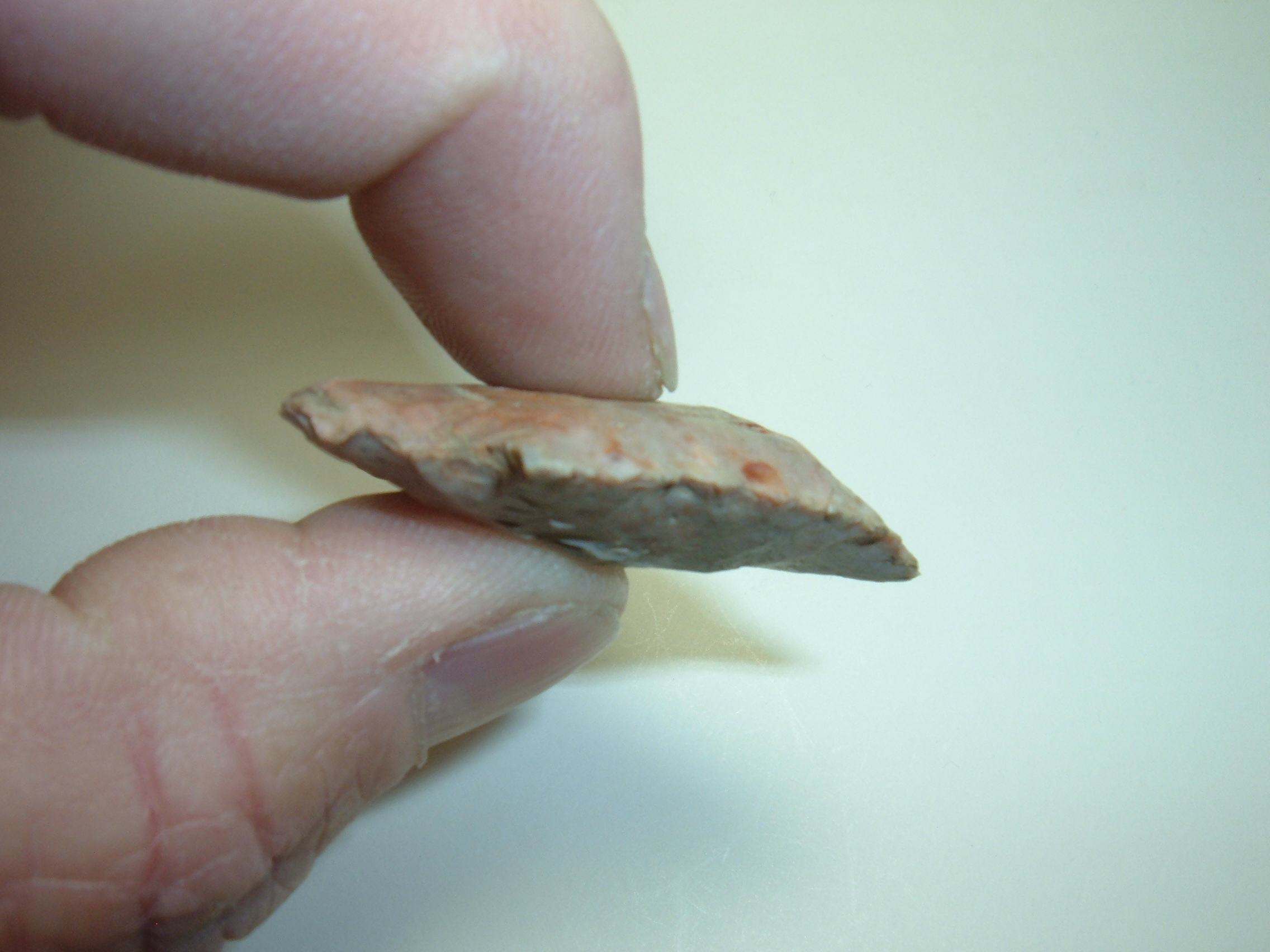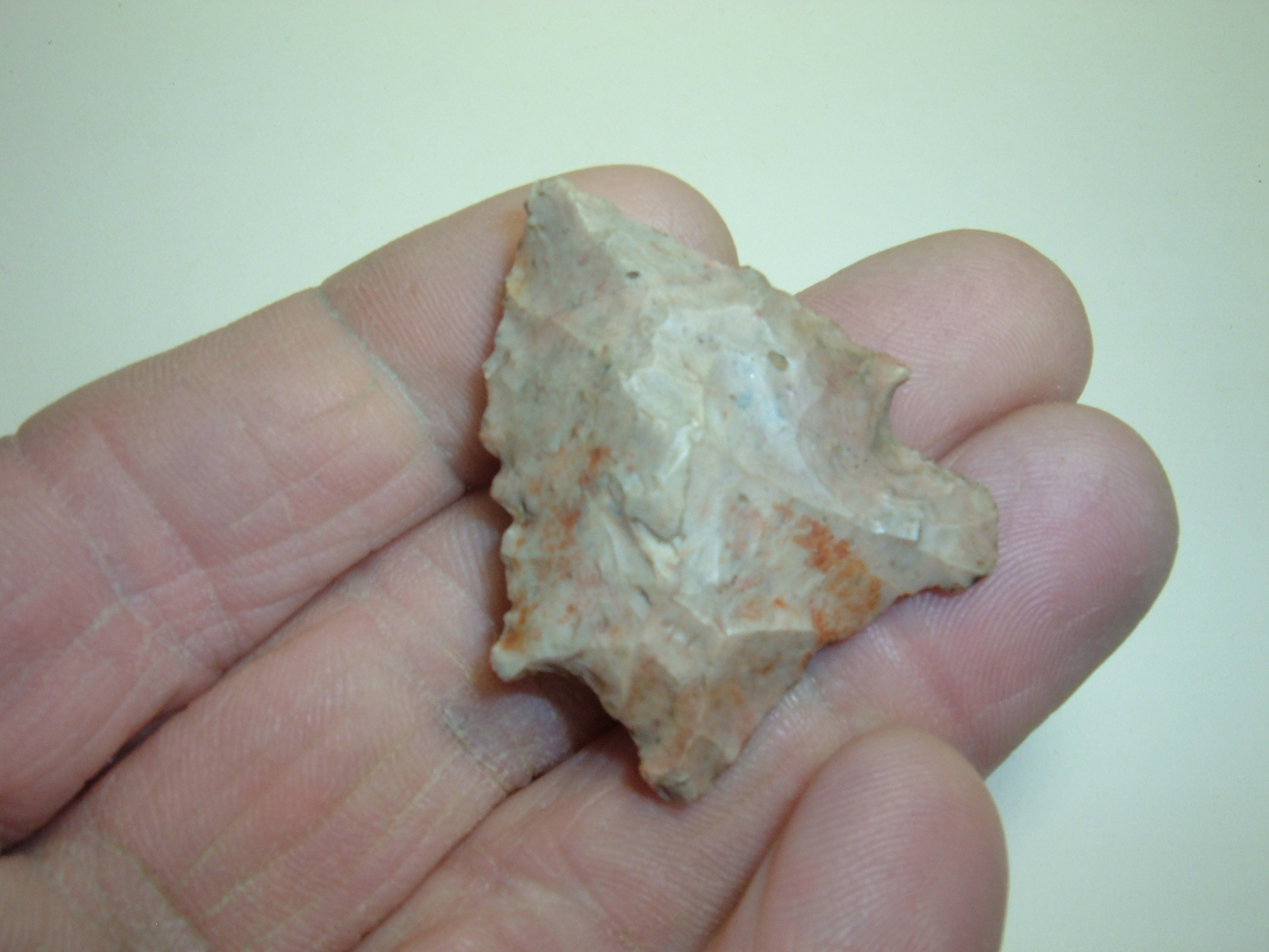 HERE WE HAVE ANOTHER FINE POINT FROM OUR OWN PERSONAL COLLECTIONS,THIS COLORFUL,OUTSTANDING KIRK CORNER NOTCH, 1 5/8" FROM PERRY CO. OHIO AND MADE FROM HIGHLY SOUGHT COLORFUL ,ORANGE FLINT RIDGE FLINT ! THIS RELIC IS EX BRYAN DONALDSON. OUTSTANDING LIGHT ORANGE COLOR WITH SOME DARKER ORANGE MOTTLING MIXED IN, KILLER POINT FOR THAT ARCHAIC COLLECTION!