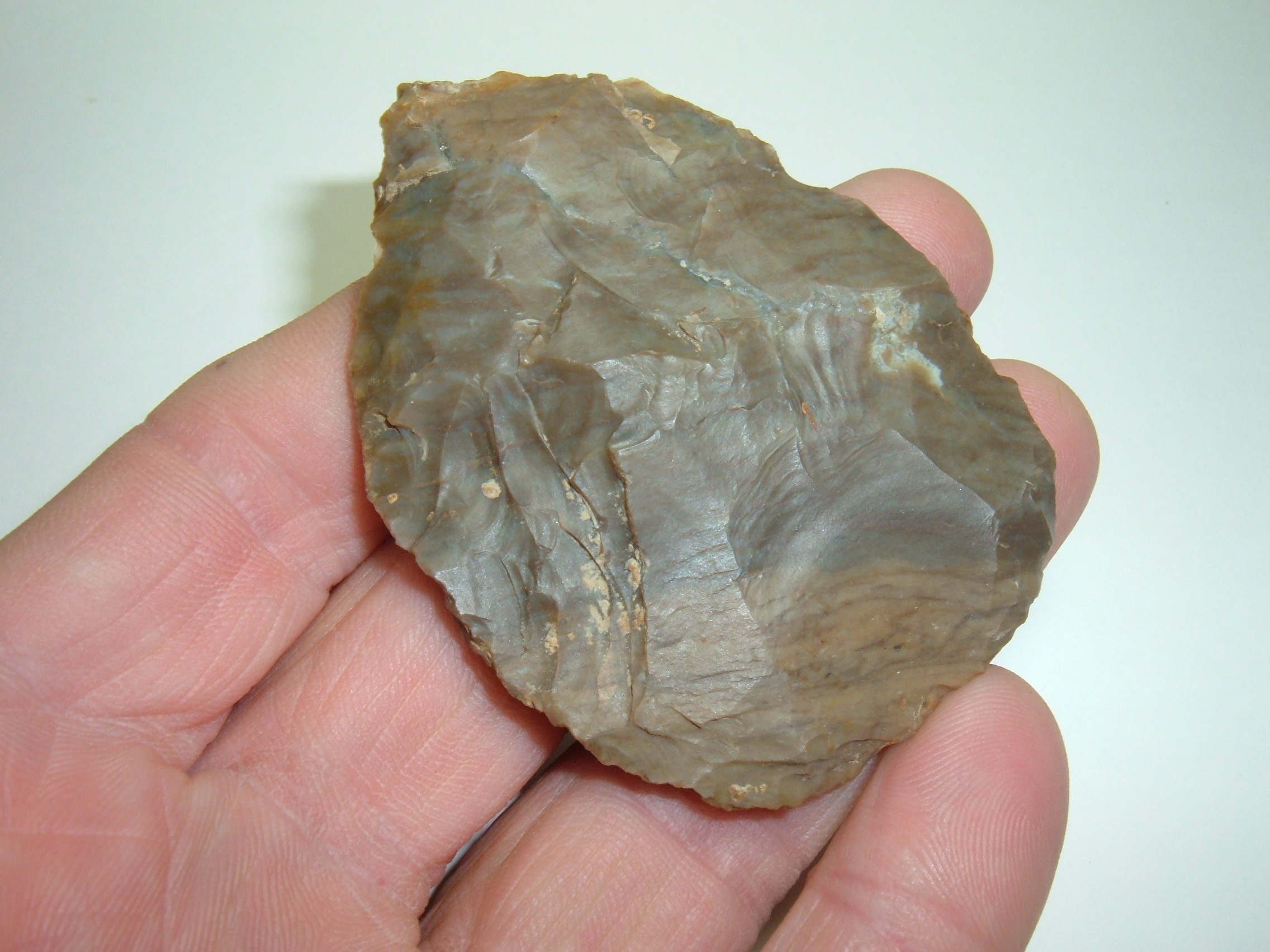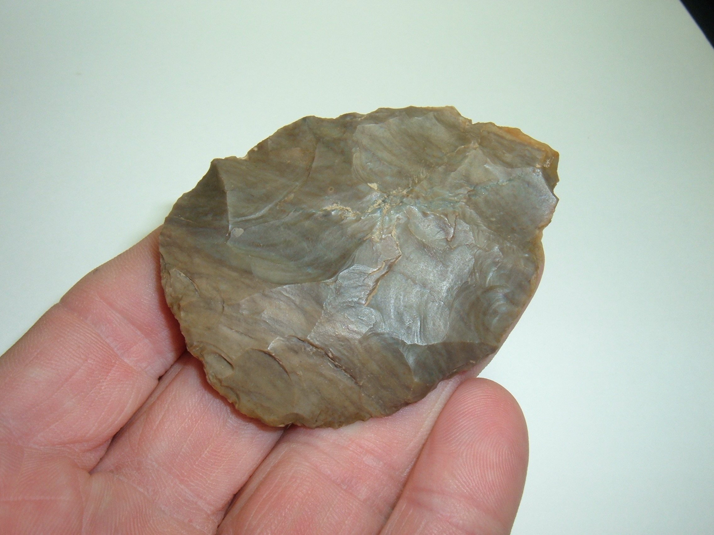 FOR YOUR CONSIDERATION IS THIS KILLER HOPEWELL CACHE BLADE, 2 3/4" x 2" WIDE FROM MORGAN CO.OHIO AND IS EX.TERRY YERIAN. MATERIAL IS NICE TWO TONE COSHOCTON GRAY FLINT, A GOOD SIZED HOPEWELL CACHE BLADE!