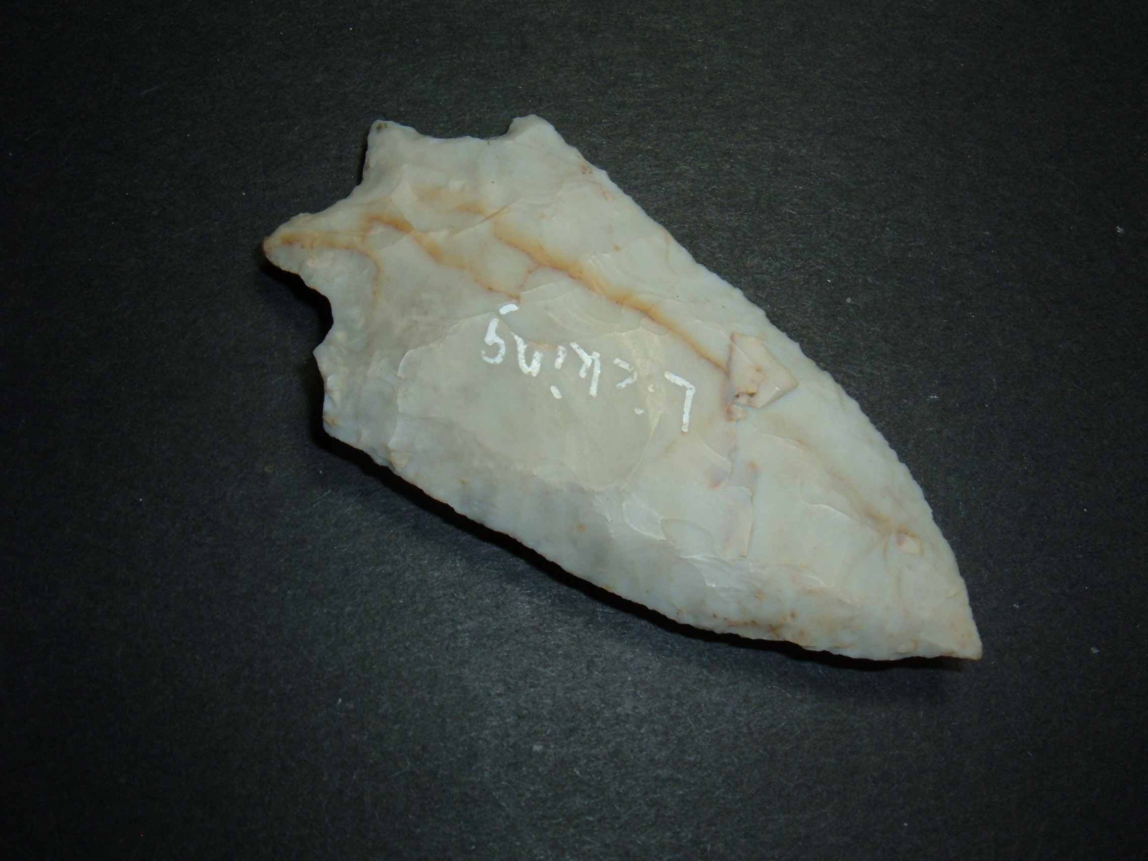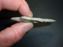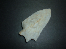 FROM OUR OWN PERSONAL COLLECTIONS COMES THIS LARGE BIFURCATE 3" FROM LCKING CO. OHIO AND IS EX DAVE ELLIS. MATERIAL IS BEAUTIFUL CREAM FLINT RIDGE . THIS RELIC HAS A SMALL CULTIVATION DAMGE AT ONE EAR KEEPING IT FROM GOING CONSIDERABLY HIGHER IN PRICE. ON A PIECE THIS LARGE AND THIS NICE IT IS RATHER EASY TO FORGIVE A LITTLE EAR DAMAGE WHICH DOES NOT DETRACT A GREAt deal from such a fine point!