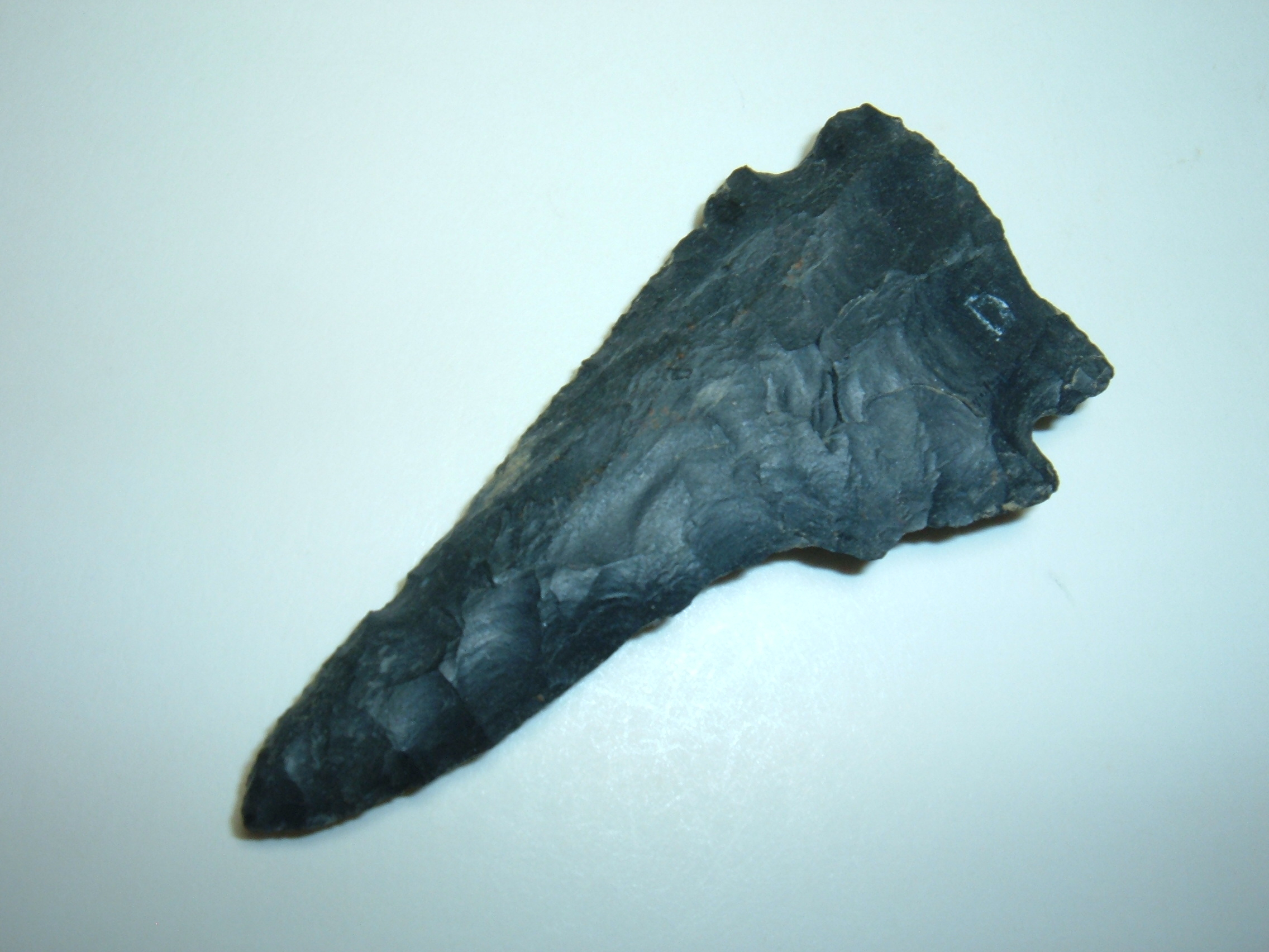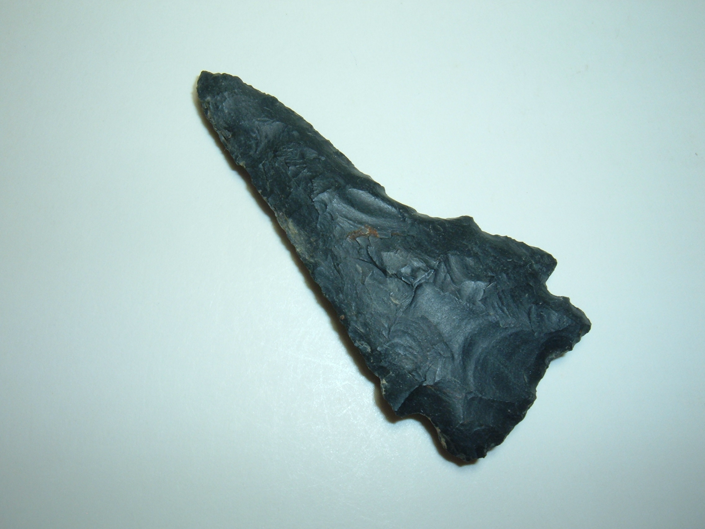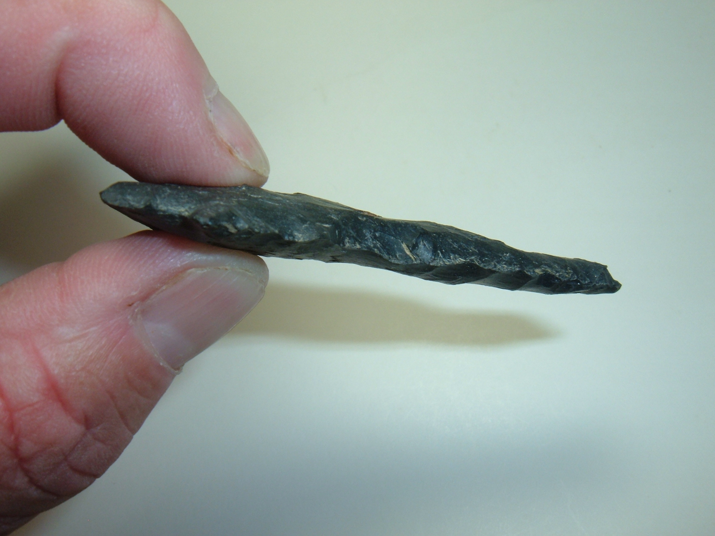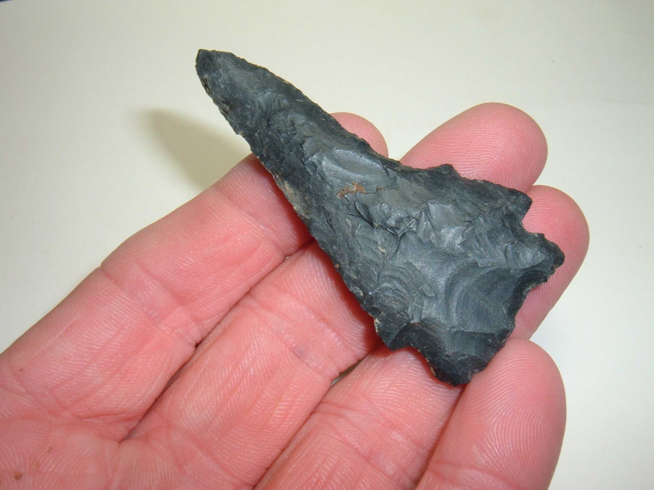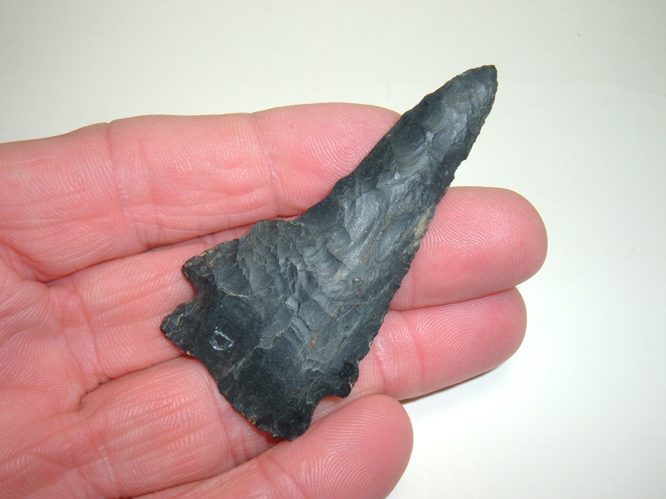 MEADOWOOD POINTS ARE QUITE UNCOMMON ARCHAIC TYPE AND THIS ONE IS A VERY FINE ONE!LOGAN CO.OHIO AND WAS FOUND ON THE DOUGLAS FARM THERE! 2 3/8" & KILLER BLACK COSHOCTON !!! YOU CAN SEE HOW THE PRIMITIVE ARTISANS USED THIS RELIC AS A KNIFE AND RECHIPPED IT ALL THE WAY DOWN AS YOU CAN HOPEFULLY SEE IN THE PICTURES. NOT ALWAYS AVAILABLE AND A GREAT ARCHAIC POINT TO ADD TO YOUR COLLECTIONS!