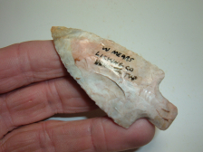 FANTASTIC JEWEL FLINT RIDGE OHIO ADENA, 2 7/8" FOUND BY W.MEARS NEAR HANOVER TWP. LICKING CO.OHIO! SUPER COLOR GREENS. PINKS MUTED BLUES ETC! ABSOLUTELY KILLER POINTIN VERY HIGH GRADE!