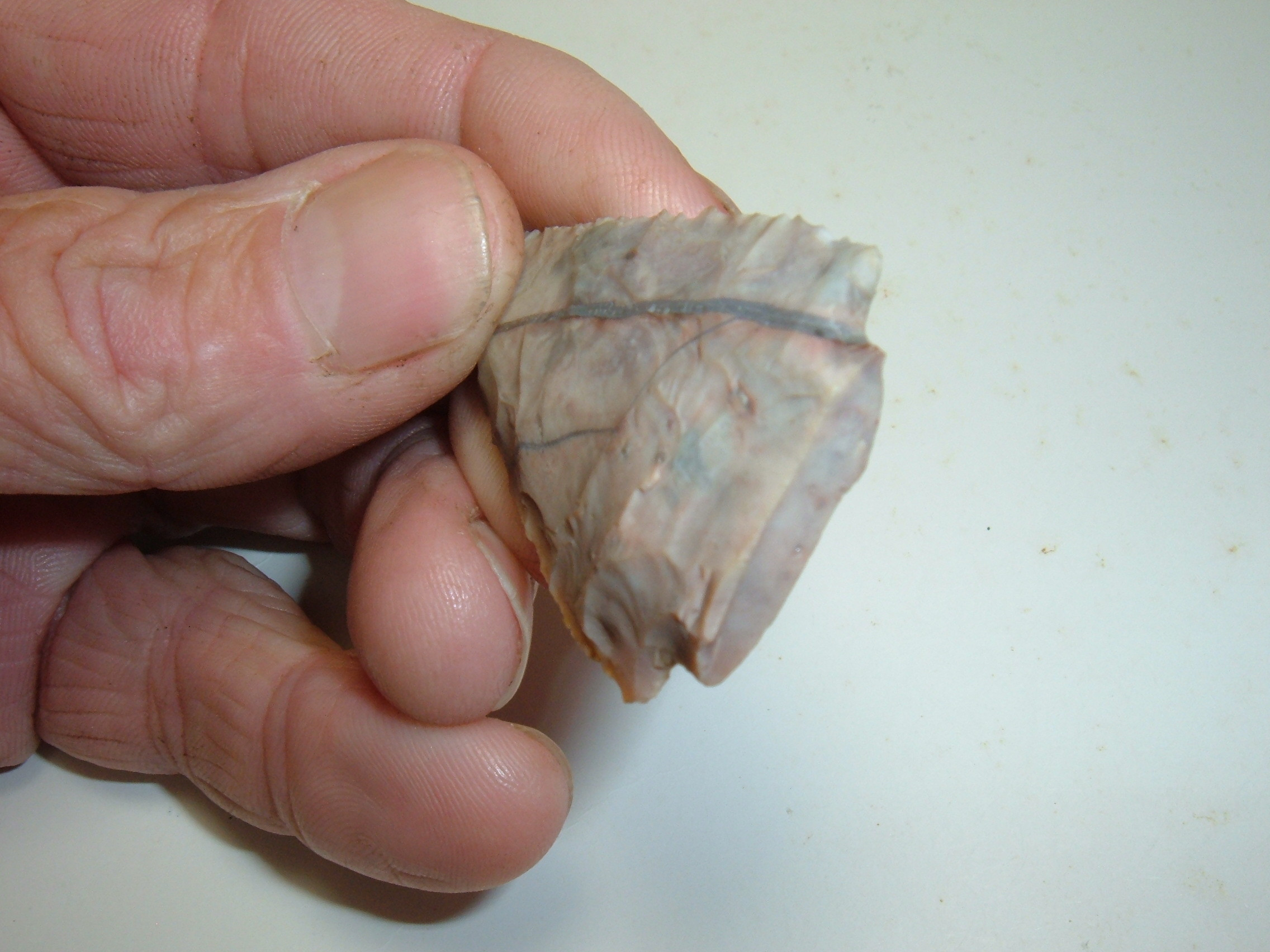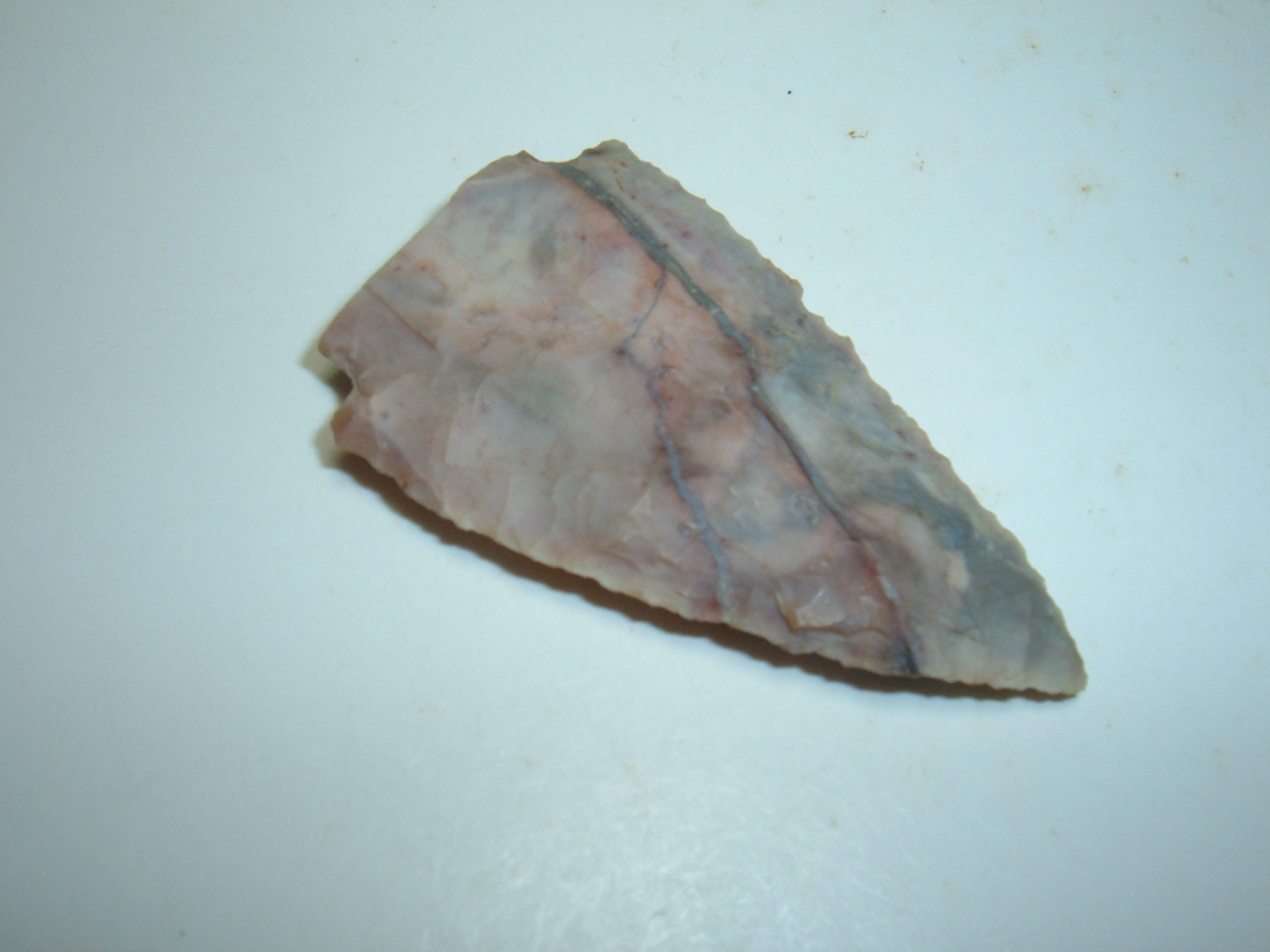 HERE WE PRESENT A REALLYM INCREDIBLE FRACTURED BASE POINT 2" FROM RICHLAND CO.OHIO AND IS EX CARL DUNN! INCREDIBLE EXOTIC COLORED FLINT RIDGE WITH PINKS & REDS AND BEAUTIFUL VEINS... WE WILL LET THE PICTURES SPEAK FOR THEMSELVES AS ONE PICTURE IS WORTH 1000 WORDS AS THEY SAY!ABSOLUTELY STUNNING!!!