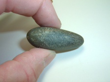 FROM OUR PERSONAL COLLECTIONS COMES THIS VERY FINE SLATE PLUMMET,1 5/8" FOUND IN KNOX CO.OHIO AT RAILROAD SIRE 13 BY BOB CHAMPION A MAN WHO LOGGED SOME SERIOUS HOURS OF RELIC COLLECTIONS IN THE FIELD! BEAUTIFUL BANDED SLATE FROM A WELL KNOWN OHIO COLLECTOR!