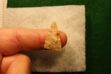 This arrowhead has been been put in a clear coin envelope to preserve and protect.