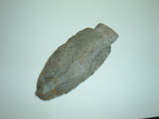 HERE IS A NIC LARGE PALEO STEMMED LANCE, 3 3/16" FROM COSHOCTON CO.OHIO AND IS MADE OF MOTTLED GRAY COSHOCTON FLINT!EXHIBITS A FLAT BASE WHICH IS THE WAY IT WAS PRIMITIVELY FINISHED. GREAT EXAMPLE OF THIS EARLY POINT TYPE!!!