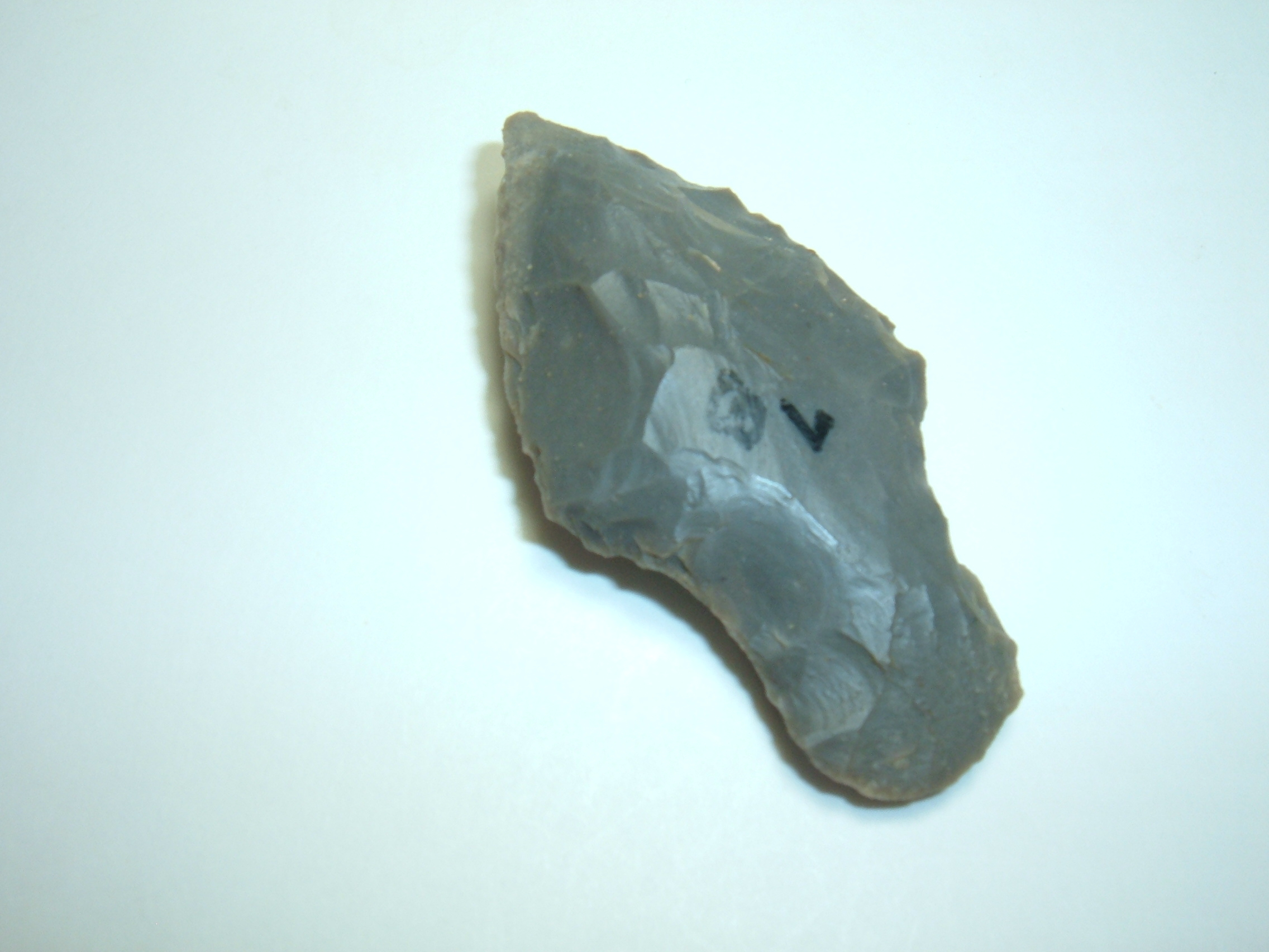 HERE WE HAVE A GREAT LITTLE ADENA POINT FROM PERRY CO.OHIO AND IS EX JIM BARKER BEING 1 7/8" AND IS MADE FROM BEAUTIFUL INDIANA HORNSTONE! GREAT POINT WITH A PLEASING SHAPE TO IT!