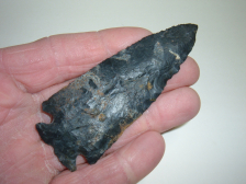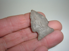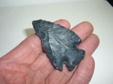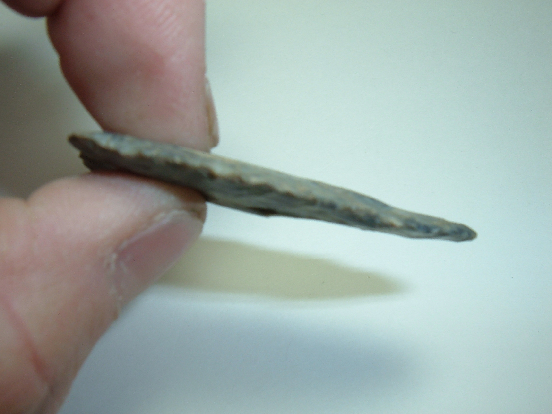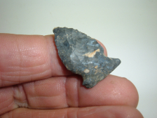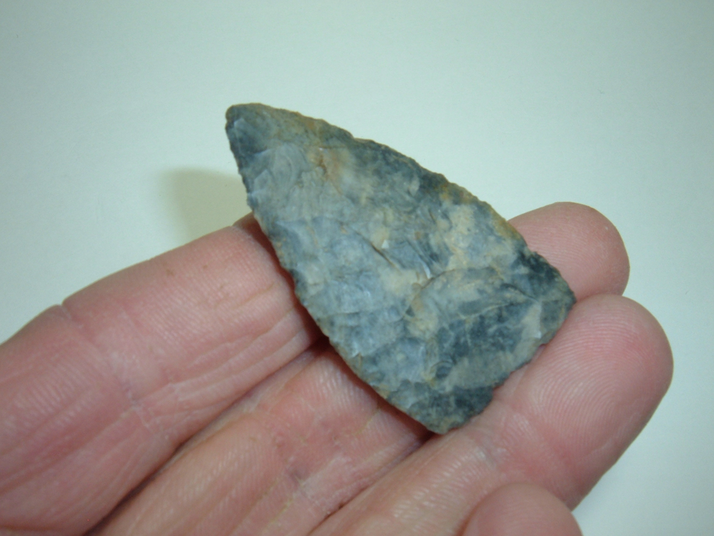 ***** SORRY-SPIRIT,THE HAM MADE HIS WAY INTO 2 OF THE PICTURES BUT YOU WILL SEE THE POINT TOO! SORRY!!!!*****THIS FINE FORT ANCIENT TRIANGLE IS QUITE LARGE AND UNUSUALLY THIN AND ONE OF THE BETTER YOU WILL SEE! 1 7/8", MADE FROM BEAUTIFUL MOTTLED COSHOCTON/UPPER MERCER FLINT AND FOUND IN THE EARLY 1900'S BY WIL;LIAM T.DILLWOTH AND FATHER JAY ON ASHLAND/MEDINA CO.OHIO BORDERS! INCREDIBLY THIN AND FLAKED FOR THE FORT ANCIENT TRIANGLE TYPE. STUNNING!