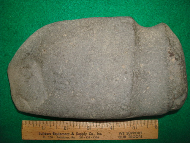 Very large three quarter grooved ax Pennsylvania. Bit was anciently salvaged. shows great use wear.