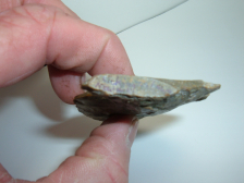 HERE IS A REAL HANDFUL OF A POINT THIS BIG ARCHAIC DOGLEG BEVEL IS A KILLER FOR SURE,JUST A SHOWPIECE! FOUND NEAR NEWARK, IN LICKING CO.OHIO AND 3 1/2",LOOKS EVEN BIGGER IN THE HAND! EX BILL LIKENS,A WELL KNOWN OHIO COLLECTOR OF QUALITY RELICS!!! MATERIAL IS FINE MOTTLED COSHOCTON FLINT WITH STUNNING GREENISH PATINA THAT IS COVETED BY COLLORS OF THESE FINE POINTS! HAS A PURPOSEFUL FLAT SPOT ON THE BASE WHERE BILL WROTE THE LOCALITY DATA OF THIS FIND.STUNNING HUGE DOGLEG!