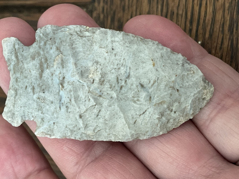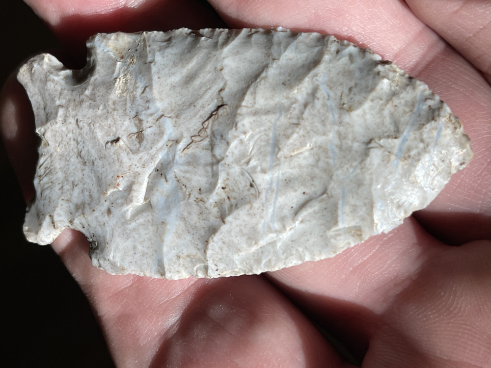 Classic Osceola, beautiful material. Early flaking and ground base. Basal thinning.