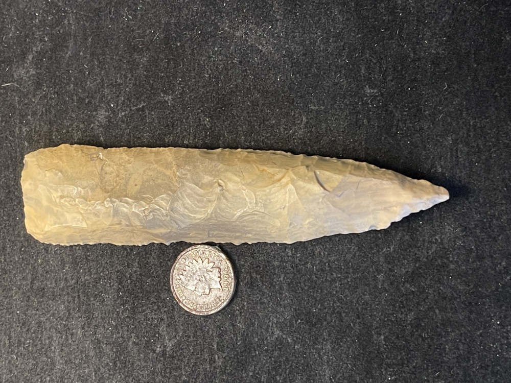 It was recovered from an area in South Central Kentucky where both Cobbs as well as Harpeth River points have been found. It is a unique variation of this group.