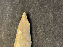 I believe it’s a Dover Chert material. Super thinning of the base, cross section varies and basically is flat on one side and beveled on the other.