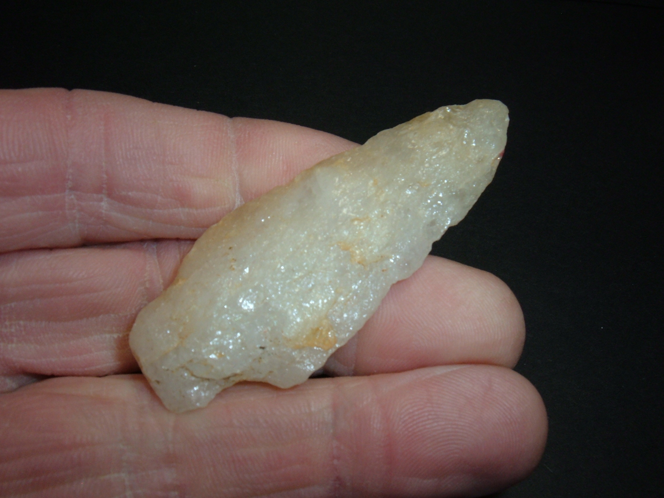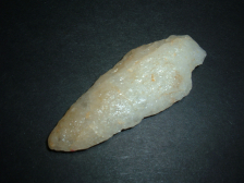 HERE WE HAVE A NICE BUGGS ISALND OINT RIGHT OUT OF OUR OWN COLLECTIONS THAT WAS FOUNS IN JACKSON, ARKANSAS AND IS EX R.B. JENKINS, EXCELLENT SIZE ,2 1/2: AND MATERIAL IS QUARTZ,EXCELLENT EXAMPLE!