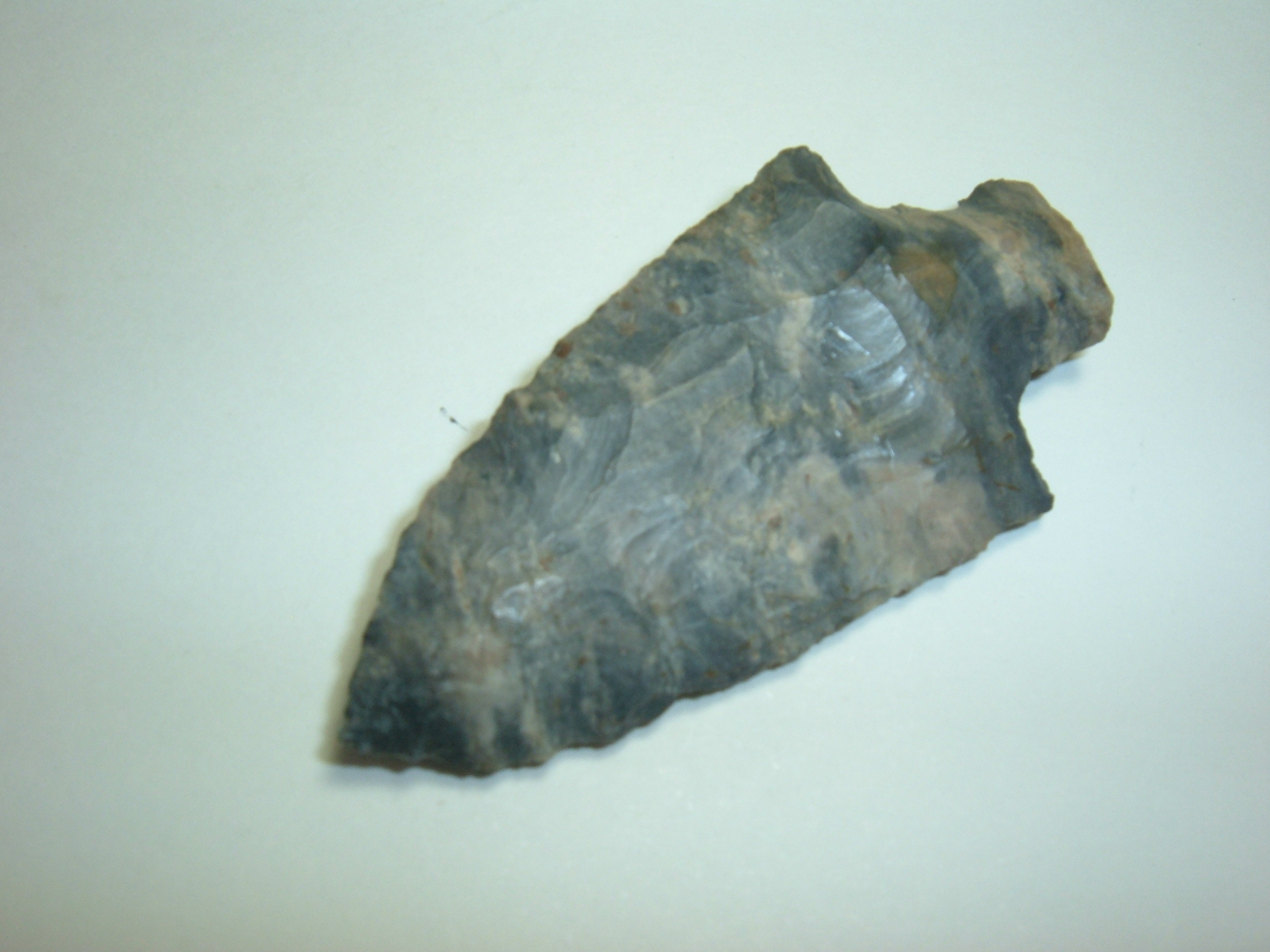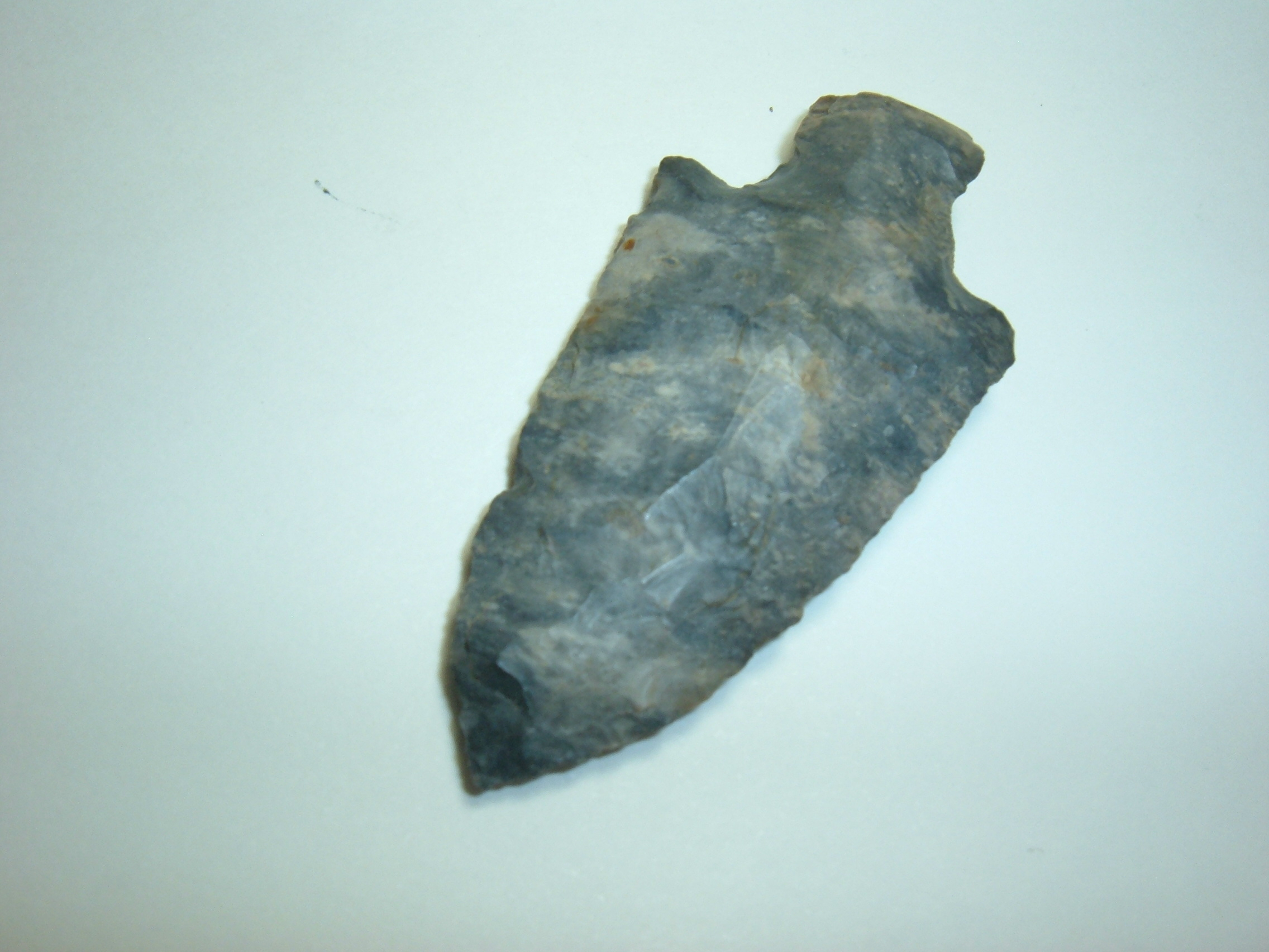 HERE WE OFFER THIS VERY FINE AND FAIRLY THIN ARCHAIC STEMMED POINT ,2 " AND FOUND IN WASHINGTON CO.OHIO. THIS OUTSTANDING ARTIFACT HAS A VERY SHARP AND POINTY TIP AND IS MADE FROM MOTTLED COSHOCTON FLINT! VERY COLLECTABLE AND EXCELLENT !