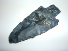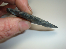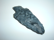 HERE'S A GREAT ARCHAIC STEMMED POINT FOUND IN LICKING CO.OHIO BY DAVE ELLIS! MATERIAL IS A BEAUTIFUL BLUE BLACK MOTTLED COSHOCTON FLINT WITH GOOD SIZE AT 3" VERY HANDSOME ARCHAIC STEMMED POINT!
