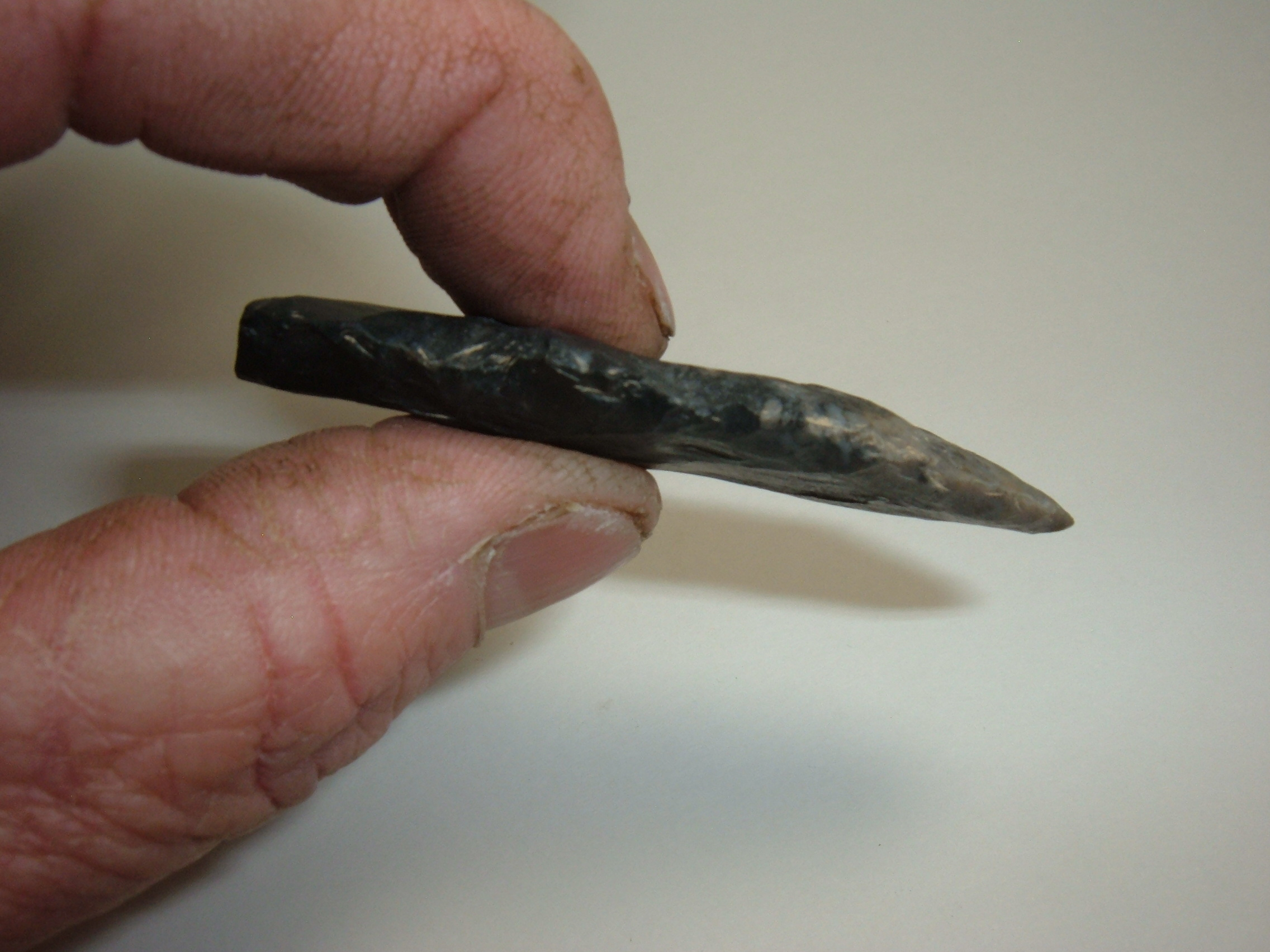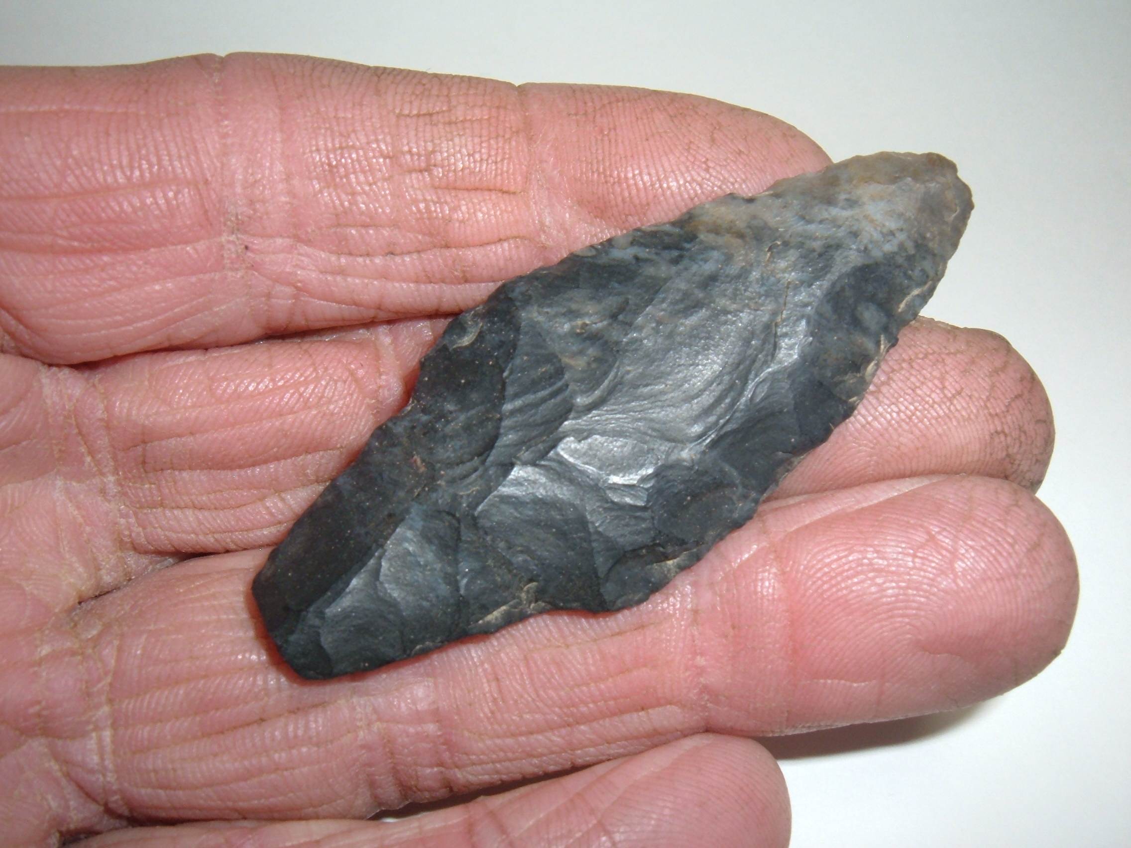 FROM OUR COLLECTIONS WE OFFER THIS VERY NICE ADENA WHICH WAS FOUND IN COSHOCTON CO.OHIO AND IS 2 1/2". THE MATERIAL IS SUPER BLACK COSHOCTON FLINT ,ADENA'S ARE ONE OF OUR FAVORITES AND LIKE POTATO CHIPS ,YOU CAN'T HAVE JUST ONE!