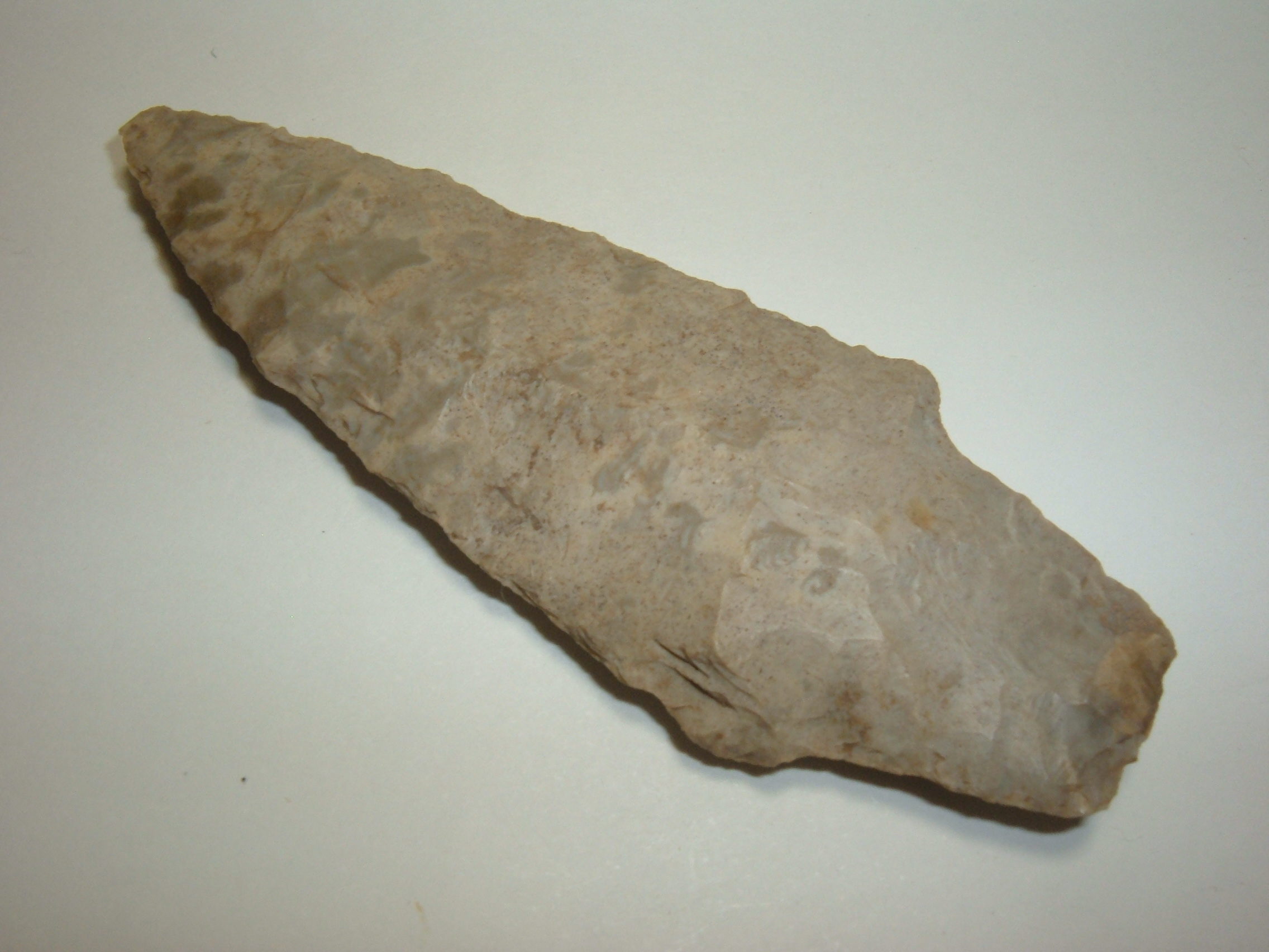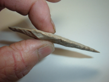 HERE WE HAVE A REALLY FINE PALEO STEM LANCE 3" AND FOUND IN ALLEN CO.OHIO ! MADE OF DELAWARE CHERT THIS RELIC IS FINELY MADE AND EXCEPTIONALLY THIN,BEAUTIFUL ARTIFACT FROM A VERY EARLY PERIOD!