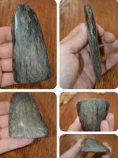 This Rare Notched and tallied Steatite Tablet was found in Monroe Co, Tennessee and measures 2.7/8 inches long and is 2 inches wide across the widest portion. This piece has 21 notches that go around the body of the piece. This piece is made from a high grade of steatite from Eastern Tennessee. Ex Mitch Lewis Very rare form