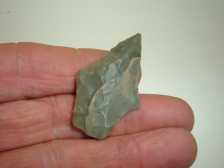 HERE WE OFFER A VERY FINE ARCHAIC HEAVY DUTY 1 13/16" FOUND IN HARDIN CO.OHIO MATERIAL IS BEAUTIFUL GRAY COSHOCTON FLINT WITH EXCEPTIONALLY FINE FLAKING! GREAT EXAMPLE OF A VERY POPULAR POINT TYPE!