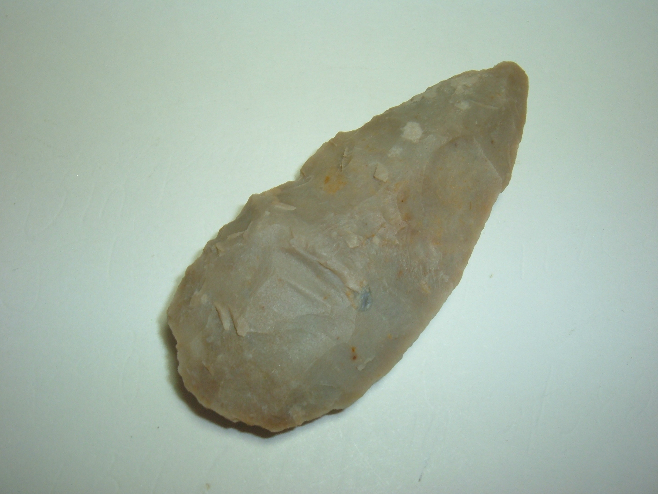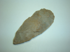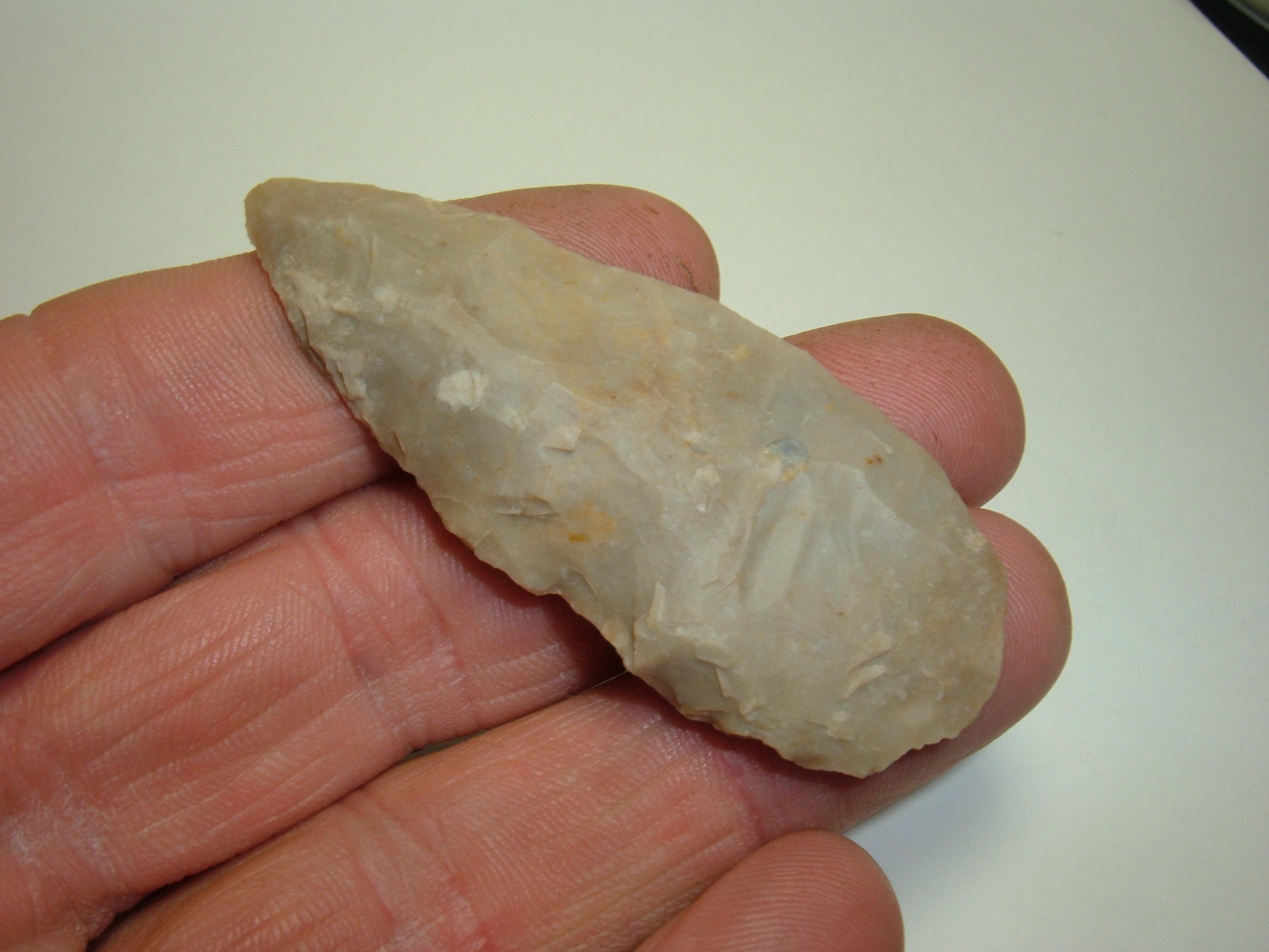 HERE WE OFFER THIS NICE ADENA CACHE BLADE 2 9/16" FOUND IN HARDIN CO.OHIO AND MADE FROM BEAUTIFUL FLINT RIDGE FLINT! GREAT ADENA CACHE BLADE!