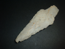 OFFERED HERE IS A HUGE EXAMPLE OF AN EARLY ADENA SPEAR, 4 3/16"AND FOUND IN ALLEN CO.OHIO! BEAUTIFUL CREAM FLINT RIDGE AND A LOT OF POINT FOR THE PRICE! SLIGHT FLAKE AT THE TIP IS ANCIENT AND IN THE MAKING!