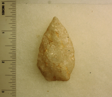 This artifact is made of a white quartz and is stout and well made.
