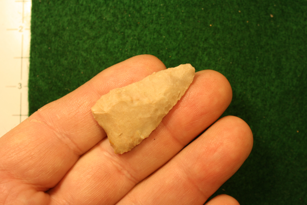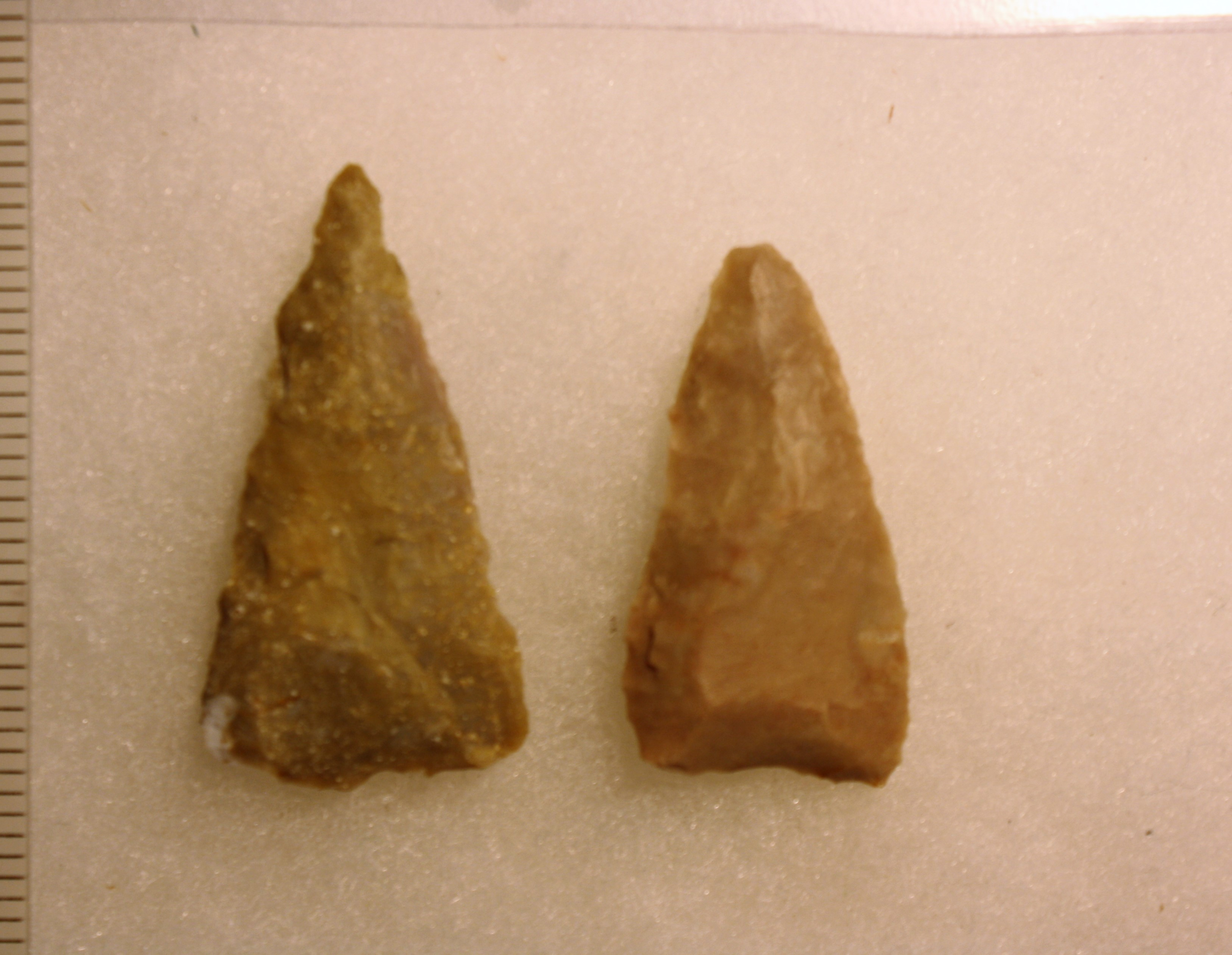 Both were found on the same dig on different days. Both are Edwards Chert, however one shows sign of being heat treated and one has a sandy gray composure.