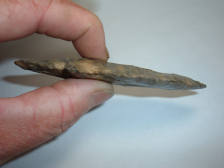 HERE WE OFFER THIS EXCEPTIONAL ADENA , 4 3/16" FOUND IN POSEY CO.INDIANA. MATERIAL IS BEAUTIFUL COLORED MOTTLED COSHOCTON FLINT! THIS FINE EXAMPLE IS EX ROBERT SCANLEN, A WONDERFUL EXAMPLE OF THE ADENA CULTURE!