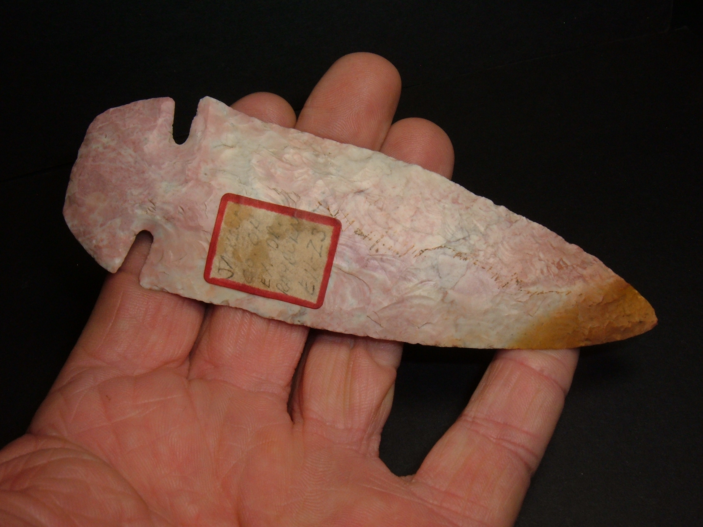 OFFERED HERE IS AN ABSOLUTELY EQQUISITE HIP ROOF DOVETAIL FOUND IN JACKSON CO.OHIO. GIANT SIZE AT 5 1/8" THIS BEAUTIFUL EXAMPLE IS EX.DR.RAYBURN ,GEORGEOUS PINK FLINT RIDGE FLINT AND VERY HIGH GRADE! DON'T MISS OUT.PRICED TO SELL!!!