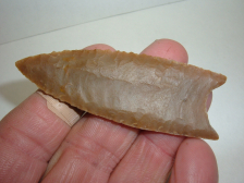 THIS FANTASTIC FLUTED CLOVIS IS AS GOOD AS THEY GET AND EXCEPTIONALLY HIGH GRADE MUCH DESIRED CARTER CAVE FLINT! FOUND IN BOONE CO.KENTUCKY THIS BEAUTY IS JUST A BIT UNDER 3" AND MEASURES 2 7/8"! EX ENSPAUGH,THIS CLOVIS IS WAFER THIN AND EXCEPTIONALLY FLAKED AND AS GREAT BARGIN!