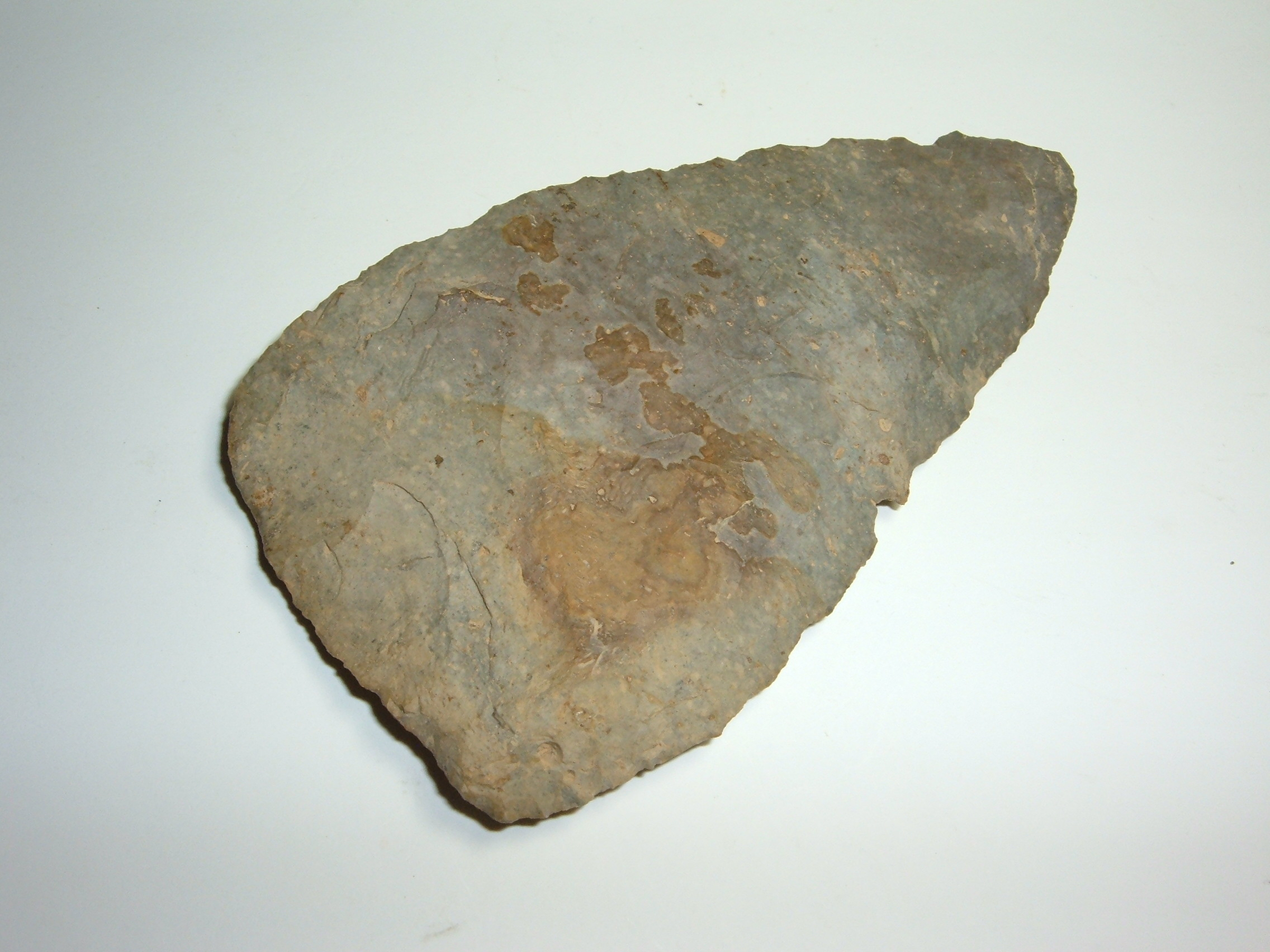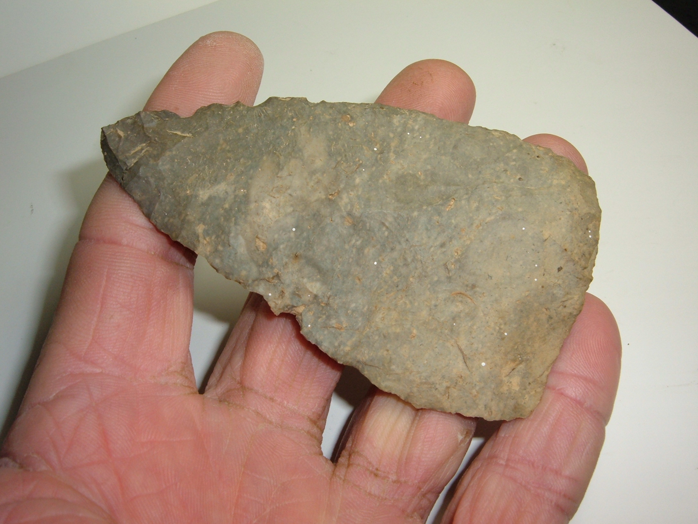 HERE'S A GREAT,LARGE ARCHAIC KNIFE FOUND IN KNOX CO.OHIO AND MEASURES 3 5/8"! VERY WIDE RELIC ALSO, AT 2 1/8" WIDE. THIS POINT IS MADE FROM COSHOCTON NELLIE,NICELY FLAKED AND IMPRESSIVE!
