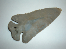 HERE WE OFFER AN INCREDIBLE GIANTTHBES/NOTCH BASE DOVETAIL AND I TYPE IT AS SUCH FOR THE FACT THAT IT INCORPORATES CHARACTERISTICS OF BOTH THESE POINT TYPES! I WOULD TRULY CALL ITY AN INTERGRADE POINT BUT WHATEVER YOU TYPE IT I THINK YOU WILL AGREE THAT THIS MONSTER IS REMARKABLE! FOUND IN HURON CO.OHIO IT MEASURES JUST A TOUCH UNDER 5" COMING IN AT 4 7/8"!!! THIS POINT IS EX JEFF SARNOWSKY AND DISPLAYS HIS CATALOG # NEAR THE BASE. MATERIAL IS BEAUTIFUL INDIANA HORNSTONE !