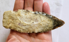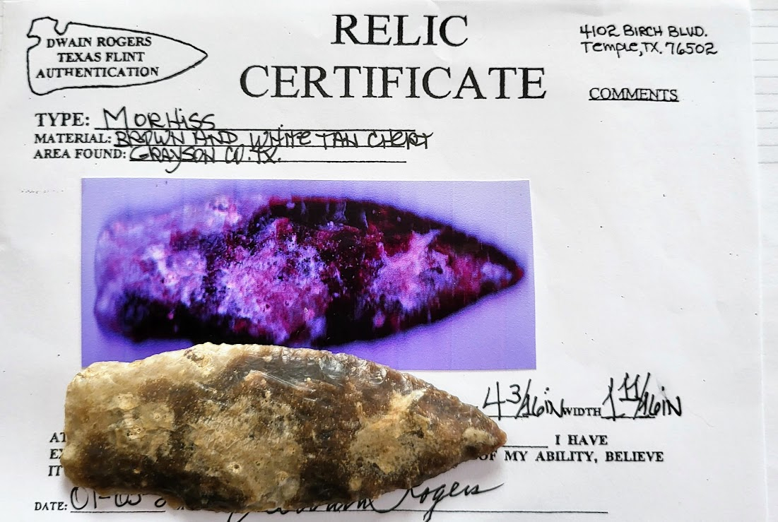 This Late Archaic Morhiss knife is made from a large chunk of patinated root beer flint. It was found in Grayson Co., Texas and comes with a Dwain Rogers COA. It's a handful!