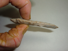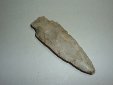 OFFERED HERE IS A BEAUTIFUL ARCHAIC STEMMED POINT FOUND IN MARION CO,OHIO! IT IS 2 7/8" AND IS MADE FROM VERY FINE CREAM FLINT RIDGE FLINT!NICE SIZE AND NICE QUALITY!