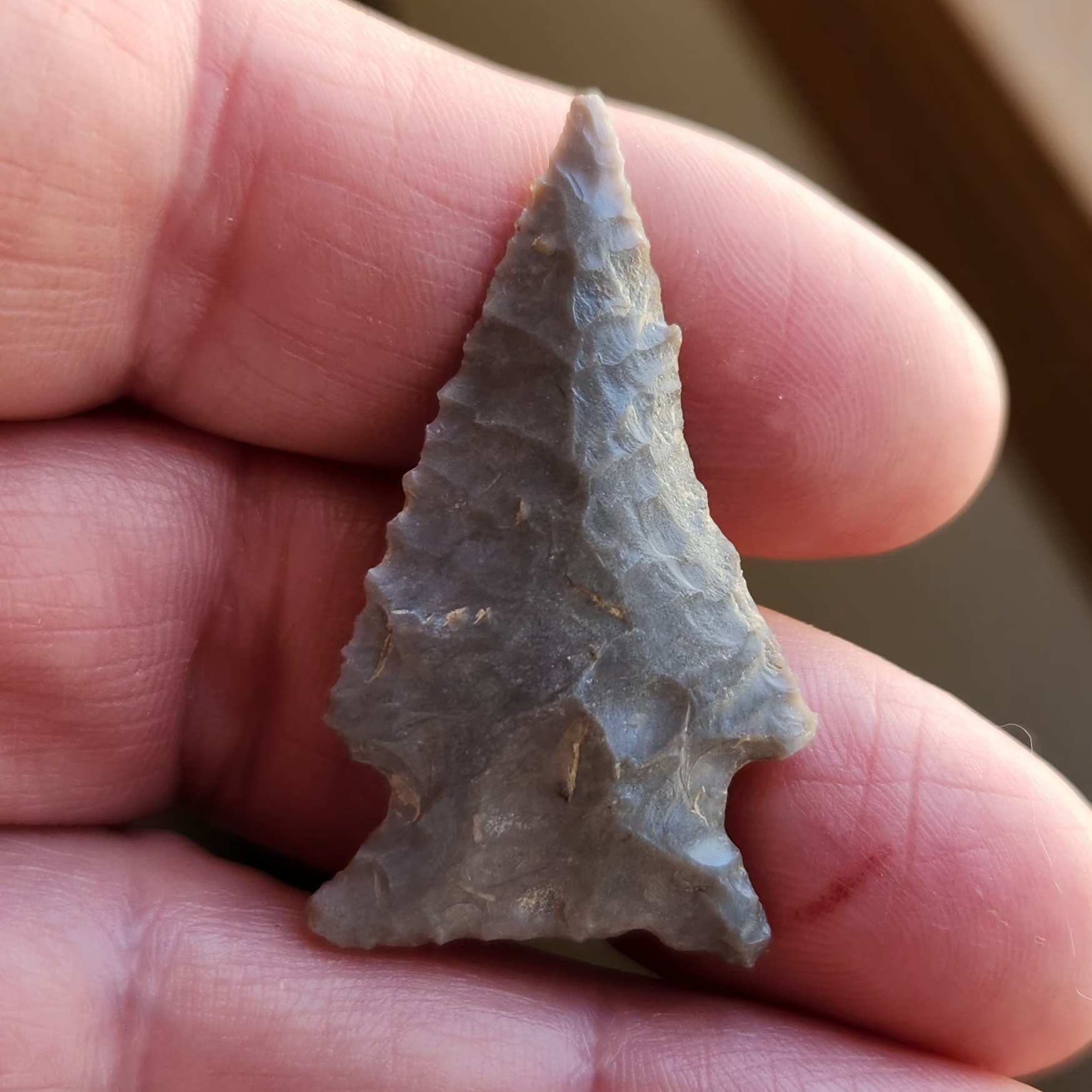 East Tennessee Kirk Corner Notch 1 and 3/4" long. This is a beautyit appear that one side is incurvate being made that way. Looks like grey knox chert of a high quality. I offer a 30 day Satisfaction Guarantee. Return for any reason. Guaranteed authentic. Shipping is $5.00 first class mail. If you are purchasing more than one artifact and using PayPal please contact me prior to paying. I can provide an invoice with shipping discounts if you are buying more than one item in a single order. If there is no contact from the buyer or payment from buyer within 24 hours of clicking the PayPal button the item will be relisted. If you need time just let me know.