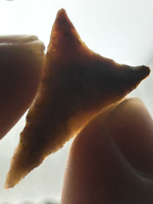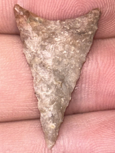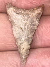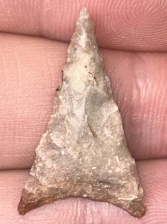 A very fine Hamilton triangle found near Nashville, Tennessee. Made from colorful fossil chert that is glossy and nicely patinated. Finely made with good symmetry. Ex: Zach Smoot collection, pictured in Who’s Who in Indian Relics #12 page 604.