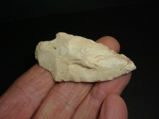 THIS NICE EALY ADENA POINT WAS FOUND IN LICKING CO.OHIO AND MEASURES 2 1/2". MADE FROM CREAM COLOR FLINT RIDGE FLINT IT IS HEAVY IN THE CROSS SECTION AND A VERY NICE EXAMPLE OF THE ADENA CULTURE IN OHIO!