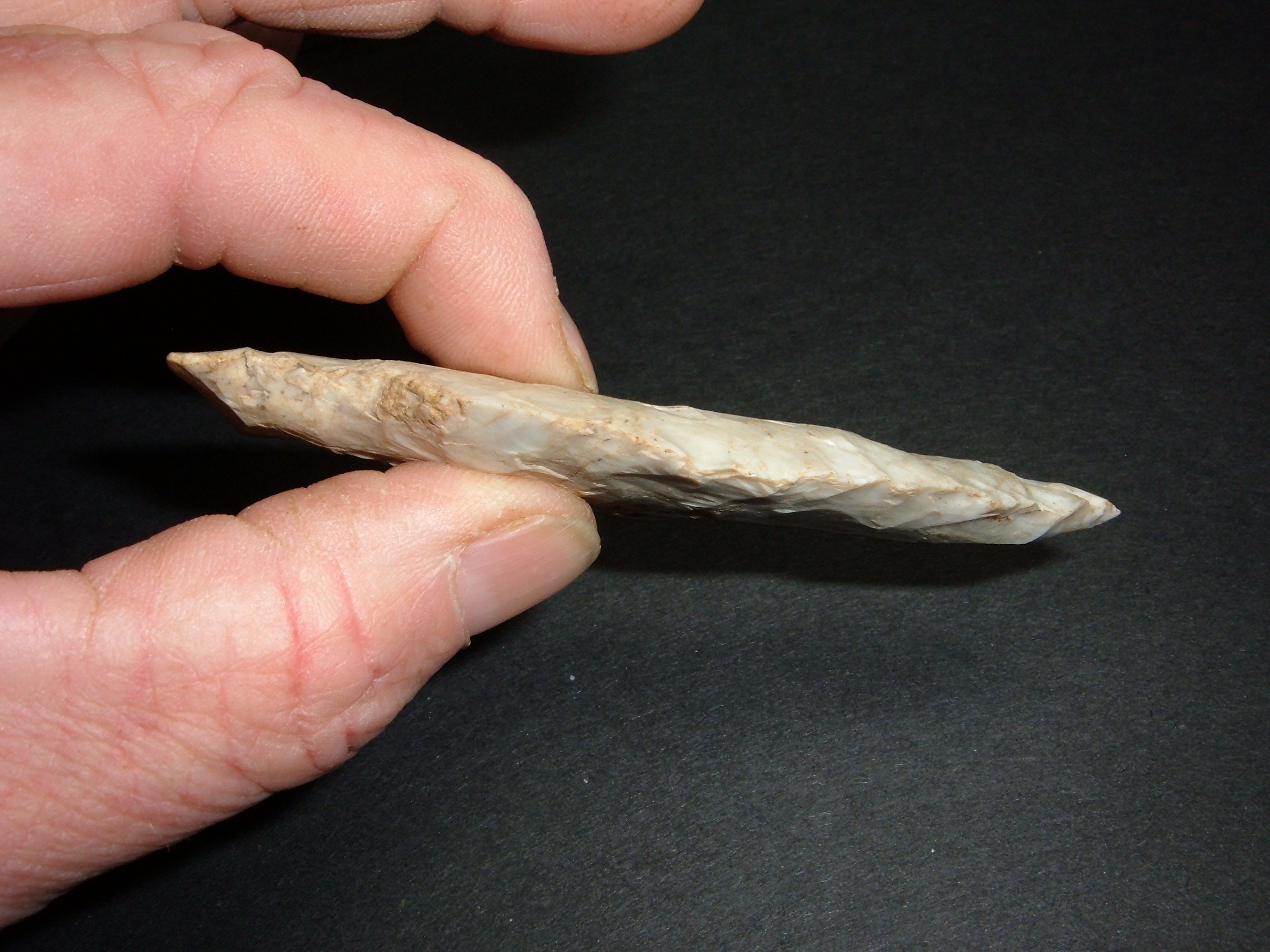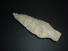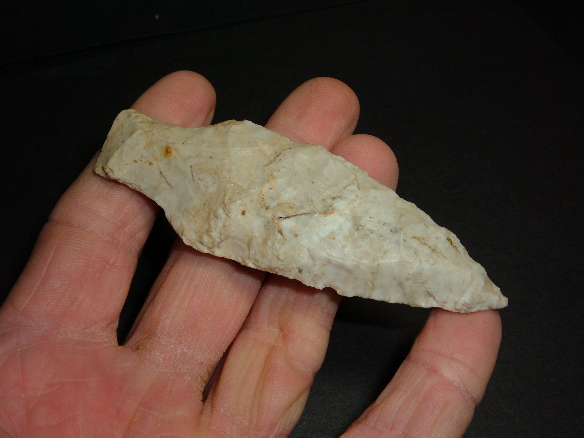 HERE IS A BIG ASHTABULA VERY LARGE AT 4" AND FOUND IN LOGAN CO.OHIO! THIS POINT IS EX BILL LIKENS AND CAME OUT OF A BOB CONVERSE AUCTION SOME YEARS AGO. IT IS MADE FROM CREAMY FLINT RIDGE FLINT AND IS A EXCELLENT EXAMPLE OF THIS RATHER RARE POINT TYPE, YOU DO NOT SEE A LOT OF THEM AND THIS ONE IS GOOD SIZE!