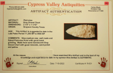 This Late Paleo Plainview has a ground base. It was found in Grayson Co., Texas and comes with a Carlos Black COA.