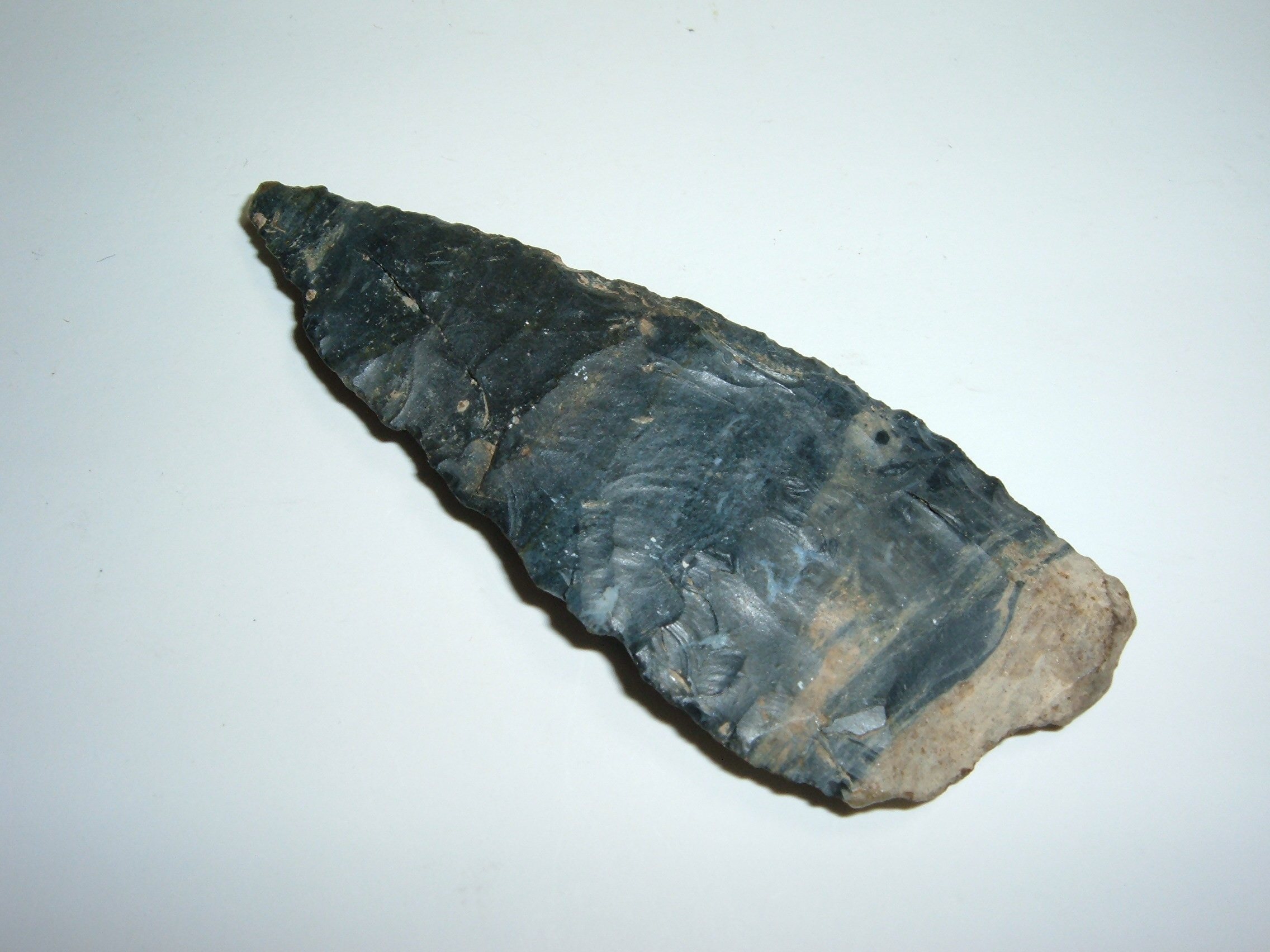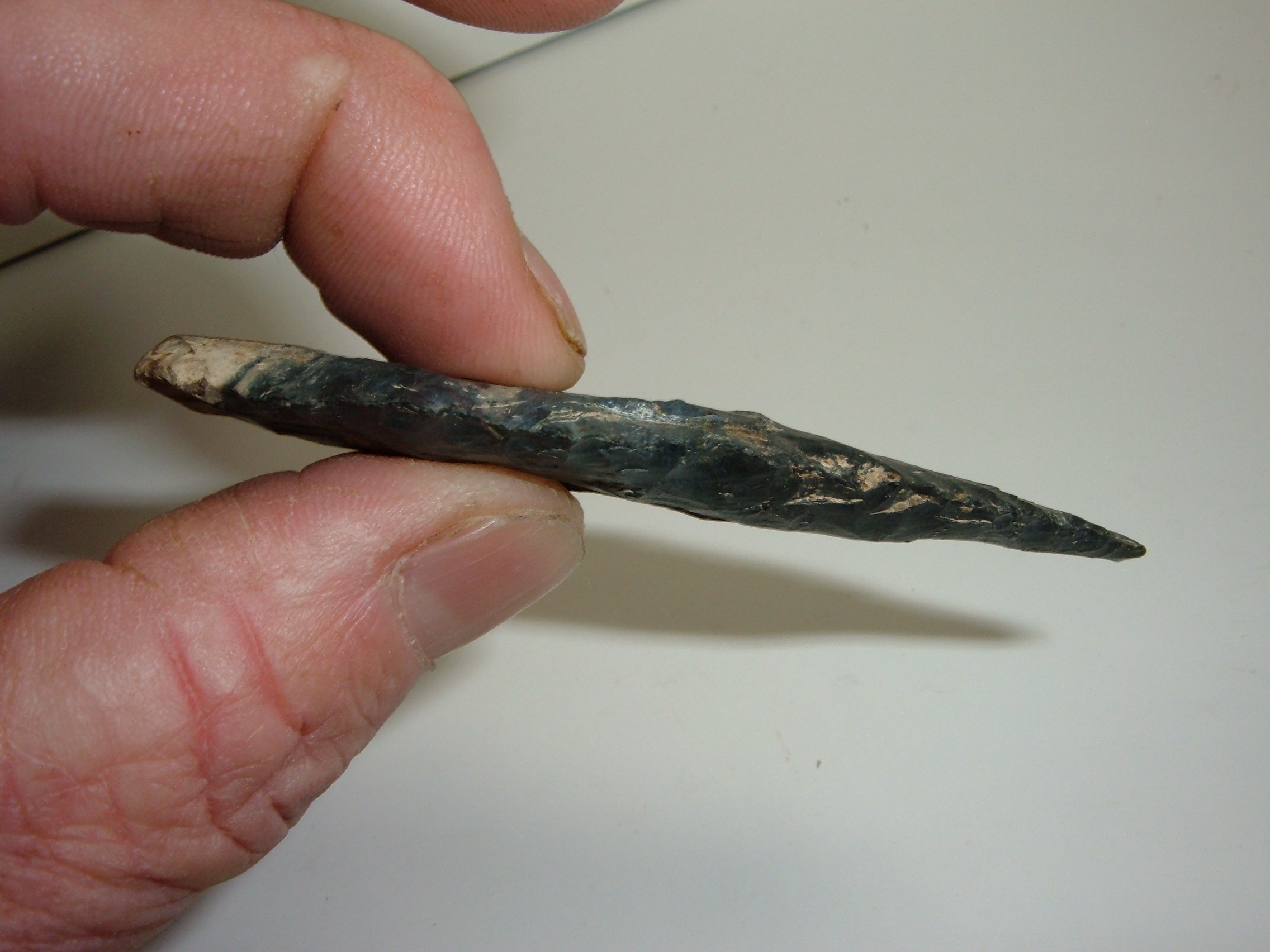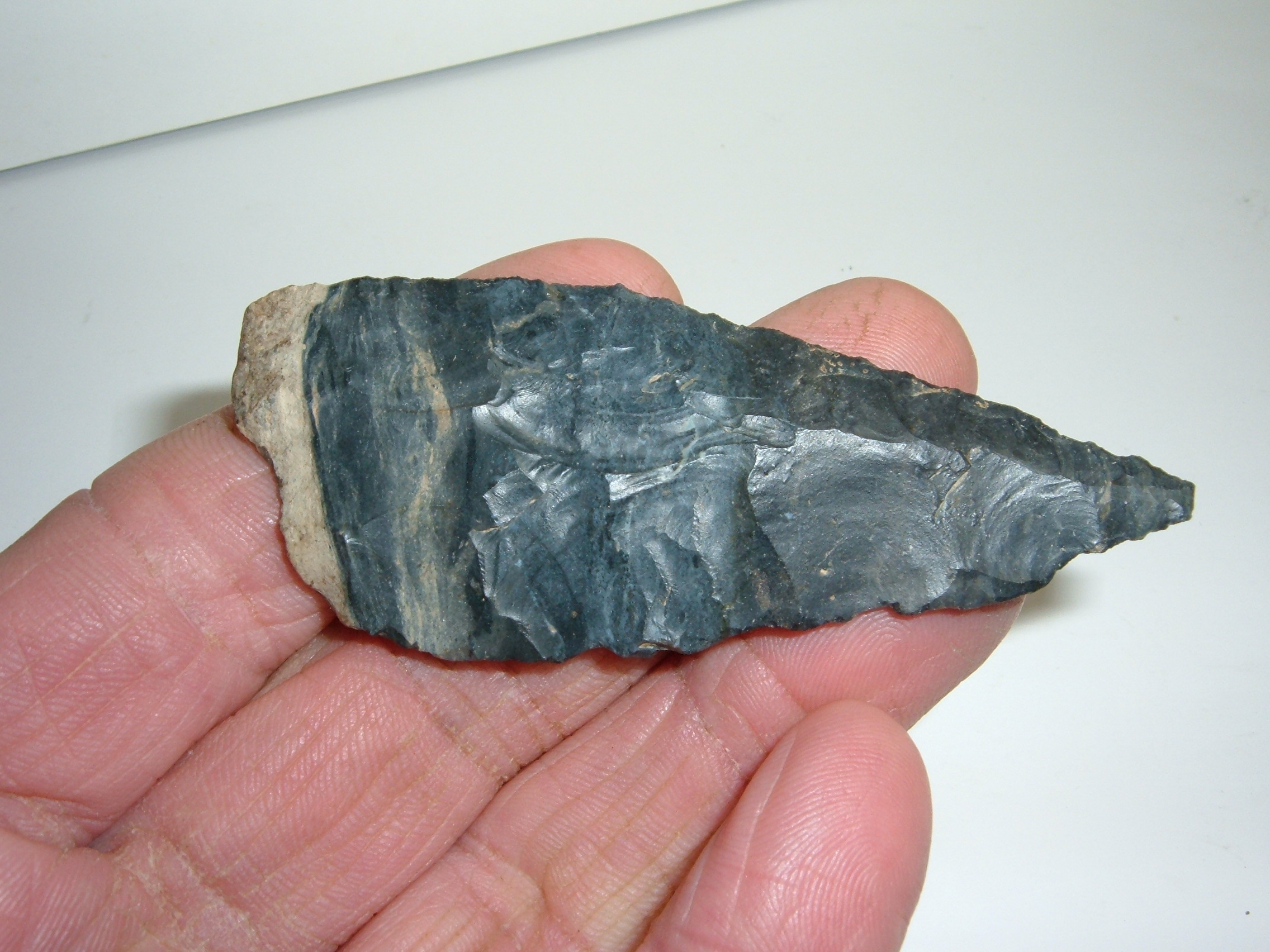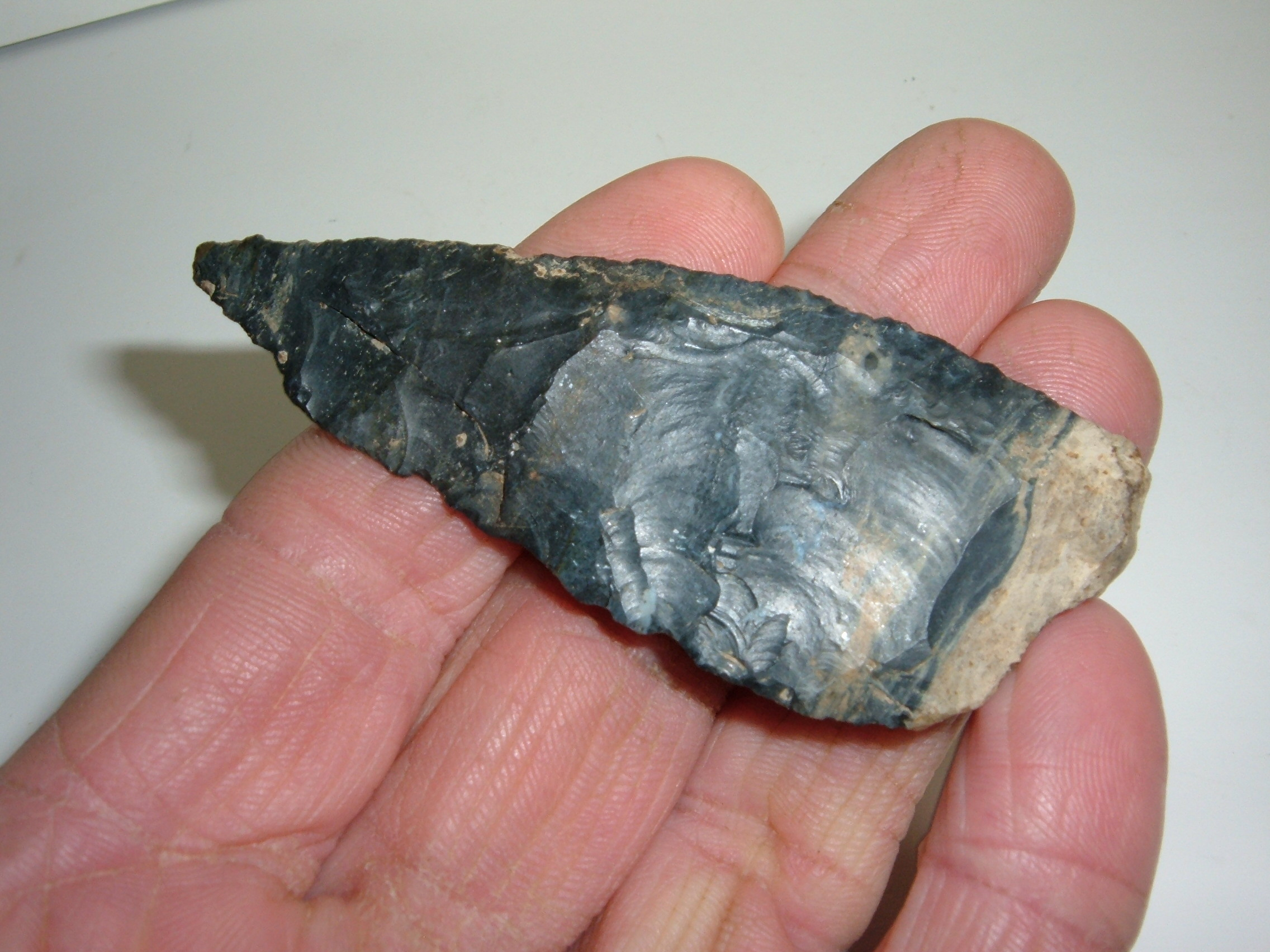 THIS FINE PALEO KNIFE WAS FOUND IN OTTOWA CO.OHIO. A COUNTY THAT YOU DO NOT SEE A LOT OF RELICS COME OUT OF! MATERIAL IS BLACK COSHOCTON FLINT AND IT MEASURES 3 1/16".EXCELLENT EXAMPLE OF THIS EARLY POINT TYPE!