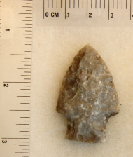 This is made from a light gray Edwards Chert that developed a high degree of whitish patina through a few thousand years in the soil.