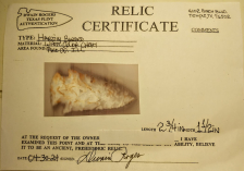 This well-formed, Barbed Hardin point is made from Burlington flint and was found in Pike Co., Illinois. It comes with a Dwain Rogers COA.