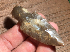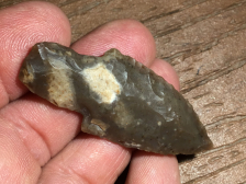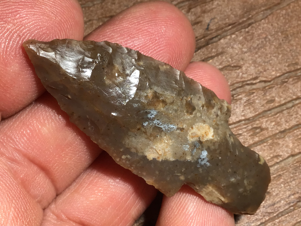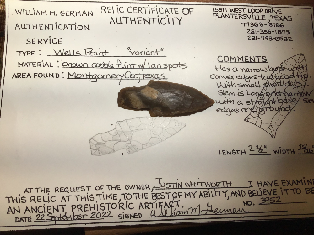 The materail is a brown cobble with a waxy finish for this Wells recovered in Montgomery county. It has a heavily ground base to a nice tip, just a dab of glue on one side. It comes with a Bill German coa. I have the shipping.