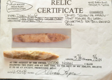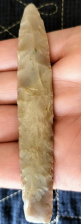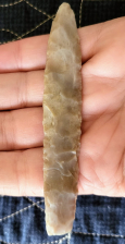 This unique, translucent Darl knife is extremely narrow and thin. It's carved from tan and gray chert and was discovered in Central Texas. It comes with a Rogers COA.